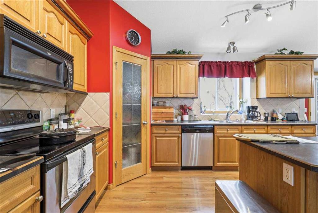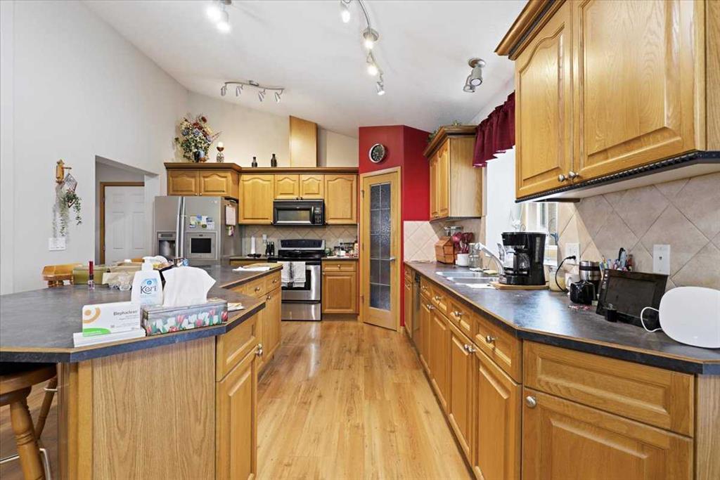 Located close to the lake this Beautiful Property has a 1669 sq/ft home with a Heated Double Attached Garage and Shop! Inside, the main floor of the home has three bedrooms including the primary that has its own 5 piece ensuite bathroom and walk-in closet. The open concept kitchen, dining, and living room are spacious and bright. A 4 piece bathroom, and 2 piece bathroom/laundry room conclude the main floor plan. The Fully Finished Basement greets you with a large family room. Three more rooms in the basement could be used as bedrooms if needed with a 3 piece bathroom amongst them. The Shop measures 18\'x48\' with half being a heated workshop and the other half used for parking and cold storage. Air Conditioning, Landscaping, and a Paved Driveway are just a few of the many upgrades. This well taken care of property shows off its pride of ownership inside and out!