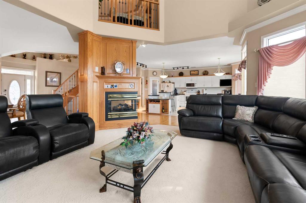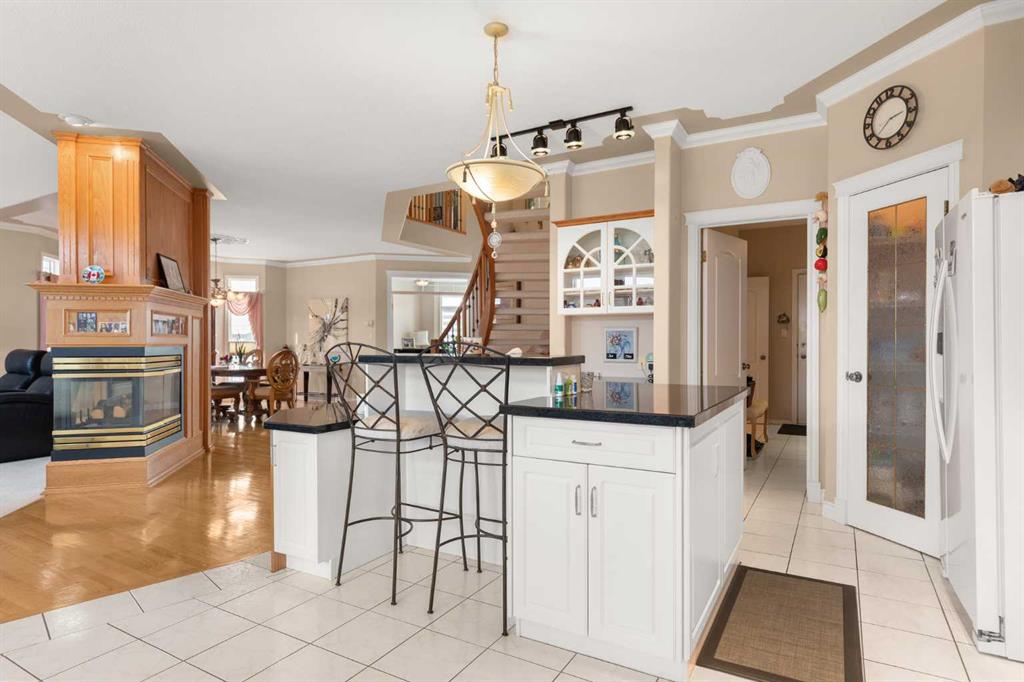 countertops and an island! The main floor also features a centrally placed 3-sided fireplace,