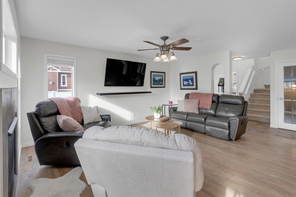 Imagine waking up every morning to the warmth of community and the promise of a sunny south backyard right in the heart of Riversong! Welcome to 429 River Heights Dr – your future family sanctuary in Cochrane, where every detail has been thoughtfully upgraded and every moment feels connected. This home opens with a bright OPEN-CONCEPT DESIGN that floods the main floor with natural light and instantly makes you feel at home, plus CENTRAL AIR CONDITIONING for year-round comfort. REFINISHED HARDWOOD FLOORS offer timeless warmth and durability that families love, while FRESH PAINT THROUGHOUT MOST OF THE MAIN FLOOR AND UPSTAIRS delivers a crisp, move-in-ready canvas. Inside you’ll find plenty of room to grow across 1938 sqft and a layout that supports real-life living – homework at the island, movie nights in the living room with cozy gas fireplace, and quiet corners for everyone. Built in 2009, the solid foundation pairs perfectly with recent upgrades for modern comfort without the new-build price. Upstairs is complete with a bonus room with valley views, 3 well-proportioned bedrooms and 2 full bathrooms, including the primary suite with a massive walk-in closet and an ensuite with soaker tub and separate shower.Downstairs is developed with an open recreation space, partially finished storage and utility space. The real showstopper is the generous 6404 sqft lot offering a SUNNY SOUTH BACKYARD bathed in light from sunrise to sunset, maximizing your outdoor season in Alberta’s climate. Enjoy the LARGE SPACIOUS DECK for morning coffee or evening wine, harvest from mature FRUIT TREES, tend your GARDEN for fresh produce, and gather around the FIREPIT for s’mores and spontaneous neighbourhood get-togethers. This private oasis is built for entertaining or unwinding, with south exposure keeping it inviting even as seasons change. Practicality meets luxury with the TRIPLE GARAGE WITH HEATER – a game-changer for Cochrane winters – and the OVERSIZED DRIVEWAY that easily fits 4 vehicles. No more street parking issues or scraping windshields; perfect for guests, teen cars, boats or toys. Picture the lifestyle this unlocks: steps from BOW VALLEY HIGH SCHOOL for easy walk-to-school access, PLAYGROUNDS AROUND THE CORNER keeping kids close, PARKS AND PATHWAYS just across the street ideal for dog owners’ daily walks, and FISHING AT THE BOW RIVER a short stroll away. Downtown amenities are quick to reach, and a short 5-minute drive to Calgary CO-OP and SLS RECREATION CENTRE which covers fitness and fun for all ages. The neighbourhood breathes old school friendliness with daily driveway chats, supportive neighbours, and a true sense of family. It’s safe, connected, and full of organic community moments that make every day better. Don’t wait! Contact us or your favourite realtor today to book your private showing and start living the lifestyle you deserve.