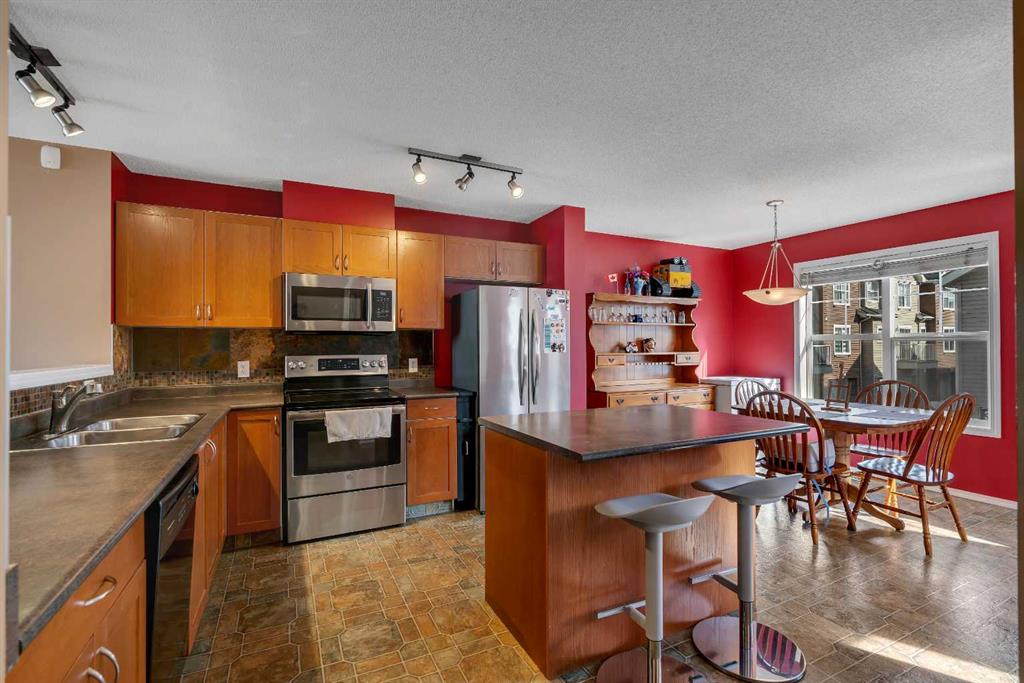 Welcome to 320 Elgin Gardens SE, a beautifully maintained 3-bedroom end unit located in the highly sought-after community of McKenzie Towne. This bright and spacious home offers a unique and functional layout designed for both comfort and entertaining. Upon entering, you are greeted by a stunning sunken living room with soaring 14-foot ceilings, creating an open yet private space to relax. Large, oversized windows allow natural light to pour in, making the space feel warm and inviting while still maintaining separation and privacy from the other living areas. Just a few steps up, the open-concept kitchen overlooks the living room, allowing for easy conversation and connection with guests or family below. The kitchen features a centre island with an eating bar, ample cabinet and cupboard space, and flows seamlessly into the dining area and convenient office nook. A 2-piece bathroom completes this level. The upper floor offers three well-sized bedrooms, including a comfortable primary retreat with a large walk-in closet. A bright 4-piece bathroom serves the upper level. The basement provides plenty of storage space, laundry, and direct access to your double attached garage, adding everyday convenience. Additional highlights include end-unit privacy, a hot water tank replacement shortly after August 2021, and a location that truly can’t be beat. Situated just steps from shopping, schools, parks, public transit, and all the amenities McKenzie Towne has to offer.