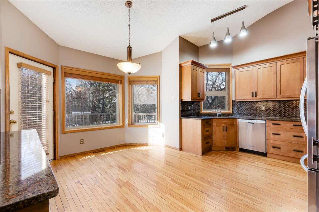 Step inside to a spacious front entry that opens to a bright living room highlighted by a charming bay window. The open-concept layout flows seamlessly into the dining area and stunning kitchen featuring vaulted ceilings, maple cabinetry, quartz countertops, stainless steel appliances, and a bright breakfast nook filled with natural light.