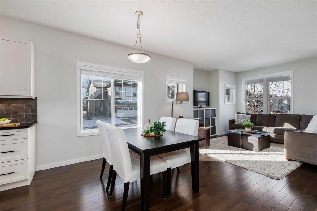 Nestled in the sought-after community of Skyview Ranch, this Jayman-built detached home offers over 2,700 square feet of developed living space across three stories and a fully finished basement. Situated on a corner lot with a welcoming front porch, this residence combines thoughtful design with functional living, making it ideal for families seeking both comfort and style. The property includes a double detached garage, five bedrooms, and 4.5 bathrooms, offering space for everyone. Inside, the main floor opens to a spacious foyer with 9-foot ceilings and hardwood flooring that flows throughout. Large windows fill the space with natural light, enhancing the open concept living, dining, and kitchen areas. The living room provides a comfortable space to relax, while the dining area accommodates family meals or entertaining. The kitchen is a highlight, featuring white cabinetry, stainless steel appliances, granite countertops, a generous island, and ample cupboard and counter space. A two-piece powder room completes the main level. Upstairs, the primary suite is a private retreat with a walk-in closet and a stylish four-piece ensuite.Two additional bedrooms share a four-piece bathroom, offering convenience for family living. The third floor includes a versatile loft, ideal as a playroom, second living area, or home office. An additional bedroom with sliding doors opens to a balcony overlooking the backyard, accompanied by another four-piece bathroom. Enjoy views of the Rocky Mountains from this level. The fully finished basement offers durable vinyl plank flooring and a rec room or flex space for hobbies, entertainment or a home gym. An additional bedroom and four-piece bathroom, along with laundry and abundant storage, provide further functionality and comfort. Outdoors, the backyard features a deck, garden boxes, and a grassy area framed by trees, while a paved back alley offers easy access for parking. Recent updates include a new roof in 2021, a new hot water tank in 2025, and freshly painted interiors. Skyview Ranch provides an exceptional lifestyle with amenities just steps from home. Families will appreciate the nearby playgrounds, walking and biking pathways, ball diamond, and soccer fields. Schools, including Prairie Sky School and Apostles of Jesus School, are within a short five-minute walk, and public transit provides convenient connections throughout the city. Quick access to major roads such as Country Hills Boulevard, Metis Trail, and Stoney Trail ensures an easy commute, while Calgary International Airport is just ten minutes away. For shopping, dining, and entertainment, CrossIron Mills and New Horizon Mall are only minutes from home. Take advantage of your opportunity to see this incredible property in person, book your showing today! Be sure to check out the floor plans and 3D tour for a closer look before your visit.