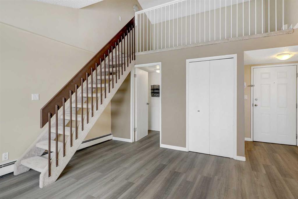 Looking for a home that offers style, function, affordability, and ease of ownership? This hard-to-find top-floor open loft-style condo delivers all that and more. With only one common wall, this unit could be perfect featuring a unique bedroom overlooking the main living area, this bright and airy unit stands out from the typical layout. You’ll appreciate the updated vinyl plank flooring, modern lighting, fresh paint, and ample storage throughout. Step outside to your east-facing patio with views of the courtyard—perfect for enjoying your morning coffee while staying cooler in the summer months. Condo fees are an affordable $286/month and include everything except power, plus you’ll have an assigned outdoor parking stall. Ideal for a working professional or investor, with similar units renting for close to $1,000/month. Immediate possession is available, making this a great opportunity to get on the path to home ownership or expand your investment portfolio.