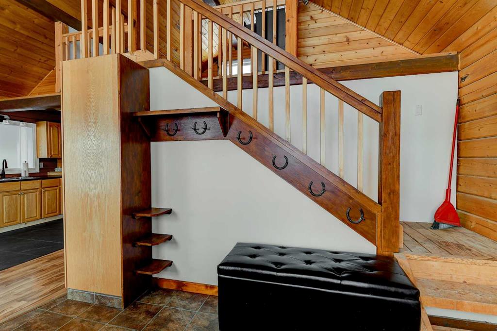 Have you been searching for your dream acreage? This beautifully crafted log home on a concrete foundation is CR-5 zoned and set on 10.08 acres just east of Grande Prairie, offering incredible flexibility and the ultimate outdoor lifestyle. Located just steps from the Smoky River and surrounded by crown land, this property is a rare opportunity for those who value space, privacy, and year-round adventure. From the moment you arrive, the full-length covered front porch invites you to picture slow mornings with coffee and evenings watching the kids play. Inside, you’ll appreciate the warmth and rustic charm throughout, with a functional main floor featuring a kitchen, living and dining area, bedroom, bathroom, and a cozy wood stove perfect for winter nights. Off the dining area, step onto the massive back deck designed for BBQs, entertaining, and soaking in long summer evenings. Upstairs offers a picture-perfect loft that works beautifully as a bedroom or additional living space, while the fully developed basement includes two more bedrooms, a bathroom, storage, and a family room. The home is finished with a durable metal roof, offering long-term peace of mind and minimal maintenance so you can focus on enjoying acreage living rather than worrying about upkeep. The property also includes a shed, lean-to, and is fenced while being set up for horses, making it ideal for hobby farming or equestrian enthusiasts. Only 10 minutes from the Teepee indoor arena! Acreages in this location with this level of charm and zoning flexibility rarely come available—book your showing today.