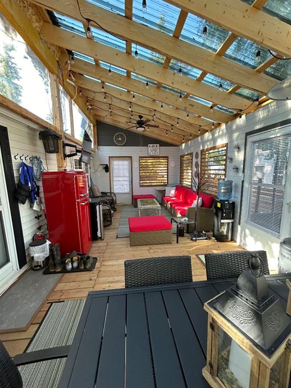 R.V Heaven & Marina is the perfect place if you are you looking for a summer retreat you can call your own! This oversized park model features a living room with a gas fireplace. The sofa and love seat both make into beds for those extra guests and there is a retractable divider to close off the living room area for more privacy. There are 2 bedrooms and a 3 piece bath. The second bedroom has built in bunkbeds. There is an abundance of storage throughout this unit. Extra features include: full size appliances, stackable washer & dryer, built in central vacuum, air conditioning and tankless hot water system. Outside of the park model there are many extras as well including a professionally built enclosed 12 x25 deck with exhaust fan, as well as a large lower deck that offers a great BBQ area and private outdoor seating with privacy walls all the way around or have your morning coffee on the front deck. The possibilities are endless. This great community is a great space to enjoy the summer evenings at the lake. RV Heaven has 94 lots within the park. The park is gated, there is a beautiful park and green space for the kids and adults to mingle, a shower house for those who\'d rather have a little more space to get ready in. There is such a sense of community here that there is always activities going on that owners are welcome to partake in. Gather around your fire with your family and friends. The marina is just steps away as this lot is located in the pod closest to the marina. The area features the marina, beach, walking trails and convenience store just a short walk away. This is a condo\'d property with fees being only $1480 per year. The season here runs May 15-September 30.