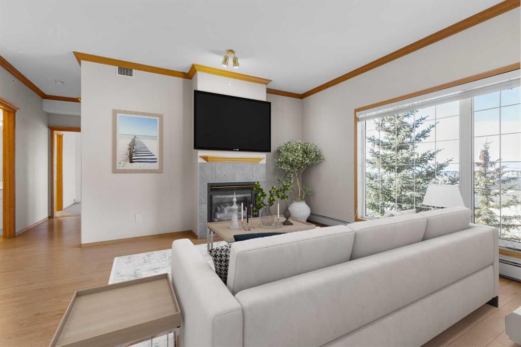Welcome to The Sierras of Tuscany, one of NW Calgary’s most sought-after 40+ adult living communities, where comfort, connection, and convenience come together. This top-floor, 2 bedroom plus home office/den area, 2 bathroom condominium offers beautiful mountain and ravine views, enjoyed from a bright, open floor plan and a fully enclosed sunroom—perfect for year-round enjoyment. Recent updates include an over $12,000 brand-new air conditioning unit and newer, high-quality laminate flooring, adding both style and peace of mind. Additionally there are two parking stalls - one titled, one assigned each with a large storage locker! Further storage is available in an enlarged in-suite storage room and the separate laundry room. Beyond the home itself, this well-managed complex is known for its welcoming atmosphere and active social calendar, allowing residents to participate as much—or as little—as they choose. Ownership here truly means embracing a lifestyle, with an impressive list of amenities including guest suites, a saltwater pool and hot tub, bowling alley, fitness room, private theatre, ballroom, craft room, woodworking shop, car wash, pool tables, and card room. The spectacular Panorama Room, complete with a fully equipped kitchen, is ideal for gatherings, celebrations, and community events. What a location! Just a short walk to the LRT, walking paths, minutes away from the Tuscany Residence Club and market and a quick commute to Crowfoot Centre and major roadways. Whether you’re looking to downsize without compromise or enjoy a vibrant adult community, this exceptional home offers the perfect blend of low-maintenance living, luxury amenities, and breathtaking views!