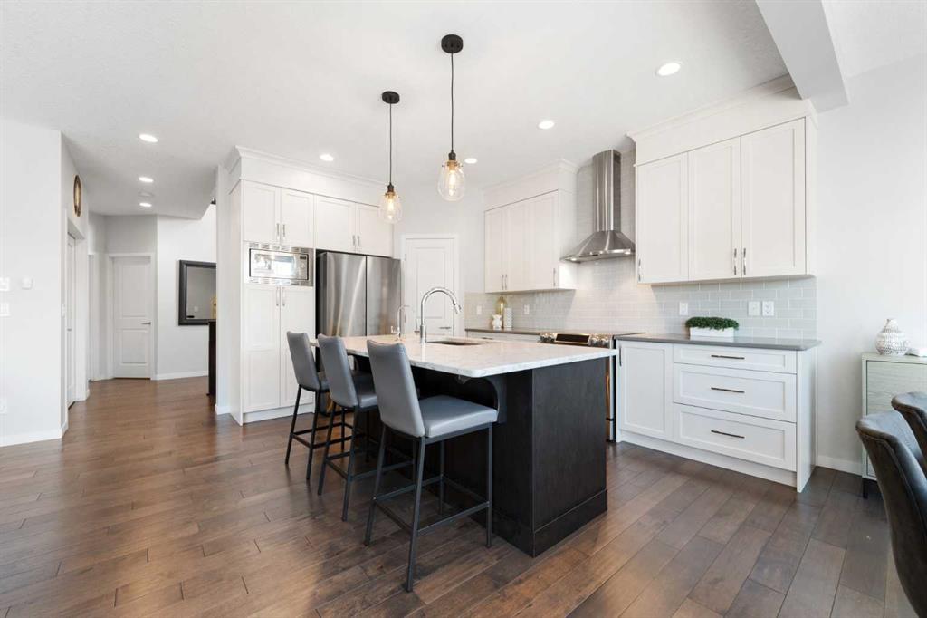 Rare opportunity to own a like-new, original-owner home in the highly desirable community of New Brighton. This turn-key, mint-condition property offers 3+1 bedrooms, 2.5 bathrooms, and a smart, open-concept layout that effortlessly balances comfort, style, and everyday functionality. A bright, welcoming foyer leads into the heart of the home—an expansive white kitchen featuring full-height cabinetry, quartz countertops, modern grey subway tile, a large center island, and a fluoride / chlorine filter for all the house (in the basement), and a reverse osmosis filter for drinking water in the kitchen. The adjoining great room showcases a cozy gas fireplace and generous dining space, ideal for both family living and entertaining. A main-floor office or flex room, mudroom, and powder room add everyday convenience. Upstairs, a sun-filled bonus room provides versatile space for relaxing or working from home. The spacious primary suite offers a peaceful retreat with a walk-in closet and spa-inspired ensuite complete with dual vanities and an oversized soaker tub. Two additional bedrooms, a full bathroom, and upper-level laundry complete the floor. The unfinished basement provides ample storage, home gym space, and excellent future development potential. Outside, enjoy a fully fenced, west-facing backyard with stunning landscaping, a tranquil water feature, garden beds, a deck, and a lower patio—perfect for summer evenings and entertaining. Additional highlights include central air conditioning, a water softener, a 1-year-old hot water tank, 3-year-old A/C, irrigation system (front and back), timeless designer finishes, and a large front yard with potential RV parking. Ideally situated on a quiet street, the home is close to parks, pathways, and transit, and within walking distance to St. Marguerite School. Enjoy quick access to recreation at the nearby New Brighton Athletic Park and convenient shopping and dining along 130th Avenue SE Shopping District. Commuting is effortless with easy access to Stoney Trail. Residents also enjoy exclusive access to the New Brighton Club, offering a splash park, skating rink, sports courts, and year-round community programs. This exceptional home delivers the perfect blend of luxury, quality, and family-friendly living.