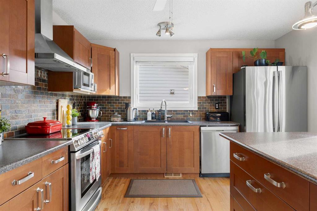 *SEE THE 3D TOUR* This home has been meticulously maintained with many updates that provide functionality for day to day. From the moment you step inside this home feels welcoming and cared for with a modern palette and warm HARDWOOD FLOORING that carries a timeless look while still feeling current and easy to style. You will also notice the natural light all throughout the home from all the NEWER UPDATED WINDOWS. Right as you walk in the front door the main level offers an inviting front living room. This front living room extends itself into more living space that works perfectly as a dining area. Moving on from the primary living area is the kitchen completed with hardwood cabinets, stainless steel appliances, and an island/sitting area. Just some steps away from the kitchen in the sliding door that provides access to the backyard as well as a SECOND SPACIOUS living room. After that is one of the standout features, the dedicated office space. This can be an ideal solution for anyone who needs an office, study area, or a dedicated play room for young children. The main level is completed by a main-floor half bath combined with laundry. Upstairs, the second level continues the thoughtful design with three well-proportioned bedrooms that feel bright and comfortable, including a spacious primary bedroom retreat with great natural light and a 4-piece ensuite, while an additional 4-piece bathroom on this level comfortably serves the remaining bedrooms. The fully developed basement expands the home in a way that truly sets it apart, offering two distinct living spaces that can be tailored to your lifestyle. Imagine a dedicated media room setup for big-screen nights, a separate lounge or games area, a home gym zone, a kids’ play space, or whatever you need the extra space to be! The lower level is also completed by a FOURTH BEDROOM and another 4-piece ensuite bathroom, offering excellent flexibility for guests, older kids, extended family, or even a private space for someone who wants separation from the upper levels. Outside of the interior living space, the GARAGE IS A HIGHLIGHT featuring a high ceilings and fresh/durable coated epoxy flooring (2025). This home is equipped with composite siding and your own PERSONAL OASIS of a backyard. With trees for privacy and a large deck with a hot tub you will be able to spend as much time as you would like outside. This home is the total package providing thoughtful updates, OVER 2670+ TOTAL SQUARE FOOTAGE and a large yard for leisure and play!