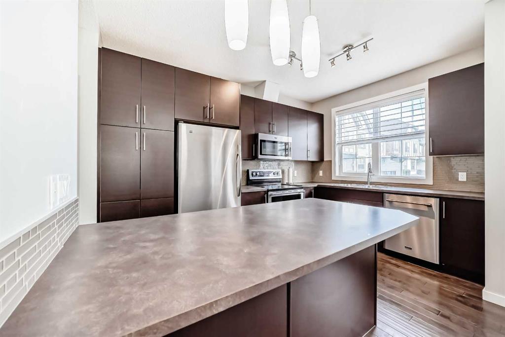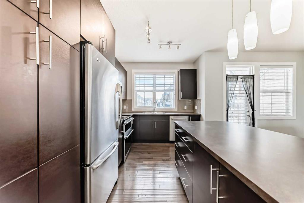 OPEN HOUSE - Saturday, Mar 7th, 12:00-4:00pm --- Welcome to this beautifully maintained two-storey townhome in the highly sought-after community of New Brighton. Offering over 1,500 sq ft of living space and an attached heated double garage, this home combines comfort, style, and functionality. Step inside through the spacious front entry and head up to the bright open-concept main living area, featuring hardwood flooring, and large windows that fill the space with natural light. The kitchen is a true highlight and a chef’s dream, complete with custom cabinetry, modern tile backsplash, a large island, and upgraded appliances including a Maytag refrigerator, double oven, and dishwasher. The adjacent dining area provides plenty of space for entertaining and offers access to a private balcony — perfect for summer BBQs. A conveniently located half bathroom completes the main level. Upstairs you’ll find three spacious bedrooms, all featuring large windows. The primary suite includes a walk-in closet and private ensuite, while the two additional bedrooms offer generous closet space and share a beautifully finished full bathroom with modern tile work. The upper floor also features a large laundry area with built-in cabinetry and storage, along with a Samsung washer and dryer. A tucked-away bonus storage room on the staircase landing offers the perfect place for seasonal items or a fun hideaway for kids. The lower level provides another versatile room, ideal for a home office, workout space, or flex room, along with access to the utility room and attached garage. Located in one of Calgary’s most family-friendly communities, New Brighton offers excellent schools, nearby shopping, and quick access to major roadways. Residents also enjoy access to the New Brighton Clubhouse, featuring a water park, hockey rink, tennis courts, and event facilities. Don’t miss your chance to own this exceptional home — book your private viewing today!