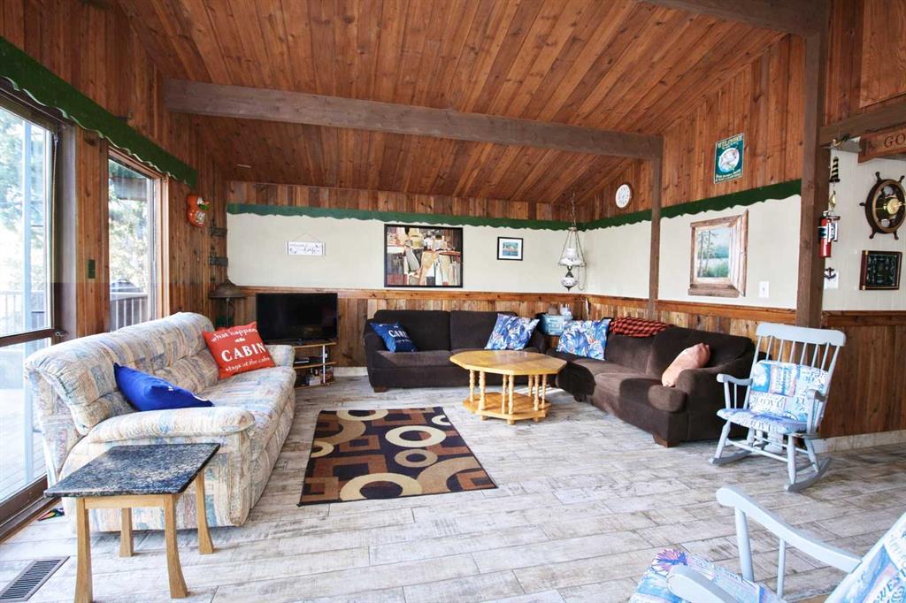 Welcome to your getaway in sought-after Sunbreaker Cove at Sylvan Lake — where lake life is a way of living, not just a weekend plan. This charming cabin-style retreat is tucked among towering mature trees, offering privacy, warmth, and that unmistakable “up at the lake” feeling the moment you walk in. Soaring wood ceilings, cozy gathering spaces, and a spacious deck overlooking the yard create the perfect setting for morning coffee, afternoon naps, and evenings around the firepit. The open living areas are designed for connection — plenty of room for family and friends to gather after a day on the water. Step outside to enjoy your private yard space and stone firepit area, ideal for roasting marshmallows and sharing stories under the stars. Located just moments from the Sunbreaker Cove community boat launch and beach area, you’ll have easy access to Sylvan Lake whenever the mood strikes. Launch the boat, spend the afternoon on the water, then come home to relax in your peaceful, treed retreat. Whether you\'re looking for a seasonal escape or a year-round recreational property, this Sunbreaker Cove gem delivers privacy, community amenities, and that classic cabin charm buyers are searching for. Lake days are calling — and this is your chance to answer.