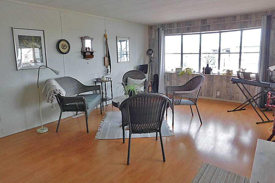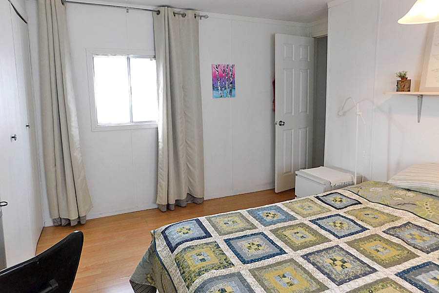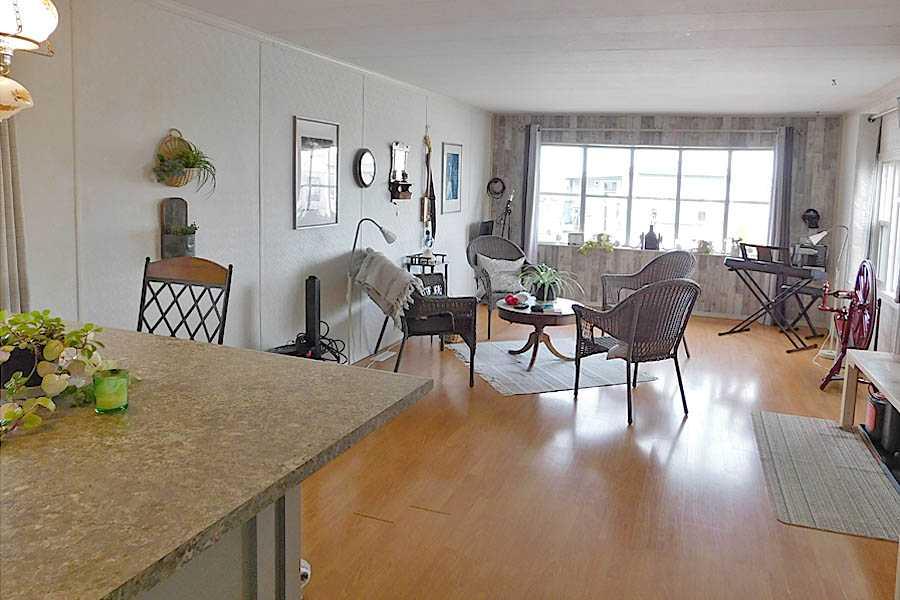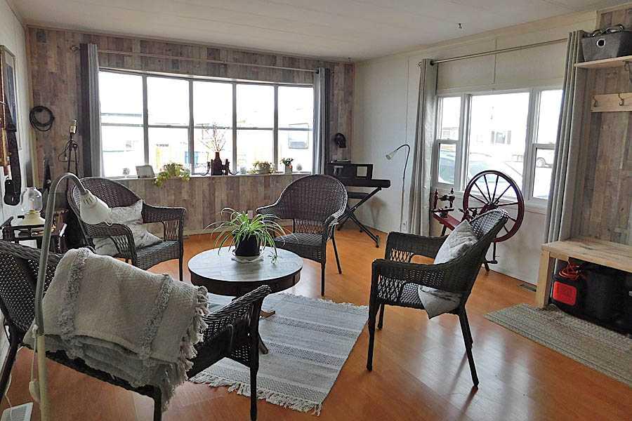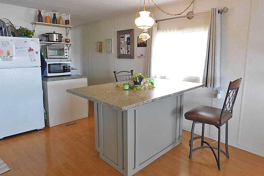You are invited to have a look at the reimagination of #5 in the Claresholm Mobile Home Park; from the floor up this 1976 property has been repaired and brought into the 21st century. Your first steps up into the enclosed deck area show you a lovely entertaining space and the south wall can be slid open to enjoy the whole deck. A great place for an afternoon gathering or morning coffee. The open concept living room, dining and kitchen area is spacious and welcoming with new paint, curtains, an island, and numerous upgrades. The modern rustic tones and décor lends itself to a variety of decorating options. Down the hall two very small bedrooms have been converted into a multi purpose space with room for a spare bed, exercise equipment or perhaps a crafting area. The bathroom/laundry has been redone totally into a bright useful space. In the roomy primary bedroom there are two closets, small office area. The large, shed w/power is a great place to putter with ample room for storage. Perennials add to the yards appeal and there is room enough beside the shed for a small RV, boat or another vehicle. Please see the supplements for a list of all the renovations and upgrades. Monthly pad fee is $510