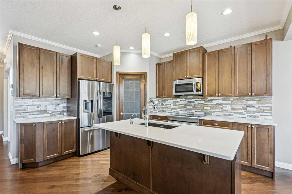 Located on a quiet street in the highly sought-after southwest community of Cougar Ridge, your beautifully appointed two-storey home offers 2,006 sq. ft. of thoughtfully designed living space above grade ++ a FULLY FINISHED basement offering an add\'L 860 sq ft. Built by Shane Homes and enhanced with numerous upgrades and beautiful finishes, the home perfectly blends everyday comfort with inviting spaces for entertaining your friends and family. Your main level features a bright, open-concept layout anchored by an impressive chef’s kitchen. An OVERSIZED ISLAND, quartz countertops, abundant cabinetry, stainless steel appliances, and a convenient corner pantry deliver both style and functionality. The adjoining living room is filled with NATURAL LIGHT from expansive windows and highlighted by a striking modern GAS FIREPLACE that creates a warm, welcoming focal point. The dining area flows seamlessly to the east-facing rear deck and fully fenced backyard, complete with a BBQ gas hookup—ideal for morning coffee or summer barbeques with your friends & family. Additional highlights on the main floor include a private den or office behind elegant FRENCH DOORS, a powder room, and a practical mudroom with shelving and direct access to the attached INSULATED double garage. As you make your way upstairs, you’ll find three generously sized bedrooms, two full bathrooms, and a spacious BONUS ROOM flooded with west-facing natural light—the IDEAL space for family movie nights or relaxing at the end of the day. The primary suite offers a walk-in closet and a well-appointed ensuite featuring a stand-alone glass & tile shower and a luxurious corner soaker tub. Your fully developed lower level adds valuable living space with a fourth bedroom, an additional full bathroom, a comfortable family room, and AMPLE STORAGE. Comfort is ensured year-round with CENTRAL AIR CONDITIONING, while recent updates include a new hot water tank (2023) and FRESH PAINT throughout, giving the home a bright, refreshed feel. Outside, the large east-facing DURADEK vinyl deck with privacy glass provides an ideal setting for outdoor entertaining while the yard offers plenty of space for children and pets to play. Ideally located just minutes from the slopes and recreation at Canada Olympic Park (WinSport), the scenic pathways and pond within the community, playgrounds, the expansive trails of Paskapoo Slopes, shopping, and restaurants—this home offers an exceptional blend of convenience, recreation, and NATURAL BEAUTY. Cougar Ridge offers excellent education options with public school catchments including Cougar Ridge, West Springs, and the highly sought after Ernest Manning, along with respected Catholic and private alternatives nearby such as St. Joan of Arc, The Waldorf, and Calgary French and International School. With easy access to Stoney Trail Ring Road, weekend escapes to our majestic Rocky Mountains—whether for hiking or skiing—are just over an hour away. You will LOVE this jewel of a home!