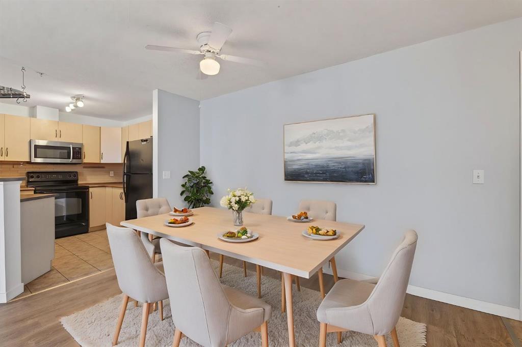 Welcome to this bright and well-maintained 2-bedroom, 2-bathroom condo offering 841 sq ft of comfortable living space, perfectly located near the shops, restaurants, and everyday conveniences of 130th Avenue and McKenzie Towne. Inside, you’ll find a functional open-concept layout designed for both comfort and practicality. The kitchen features ample cabinetry, generous counter space, and a convenient breakfast bar that flows seamlessly into the dining and living areas. The spacious living room is filled with natural light and opens directly to the private west-facing balcony, providing the perfect spot to relax and enjoy beautiful evening sunlight throughout the spring and summer months. The thoughtfully designed floor plan includes two good sized bedrooms and two full bathrooms, offering excellent flexibility for homeowners, guests, or roommates. The primary bedroom features a walk-through closet leading to a private ensuite, while the second bedroom is located near the main bathroom and offers easy access to the living space. Additional highlights include in-suite laundry, durable flooring throughout the main living areas, and a titled heated underground parking stall — a welcome convenience during Calgary’s winter months. Residents will appreciate the quiet atmosphere of the building with excellent soundproofing between units, along with the added value of condo fees that include utilities, helping make monthly expenses simple and predictable. Located just minutes from grocery stores, coffee shops, restaurants, fitness centres, and retail along 130th Avenue, this home also offers access to nearby pathways that make it easy to walk to local amenities. With quick access to major routes and everyday conveniences close by, this condo offers a fantastic combination of comfort, location, and low-maintenance living.