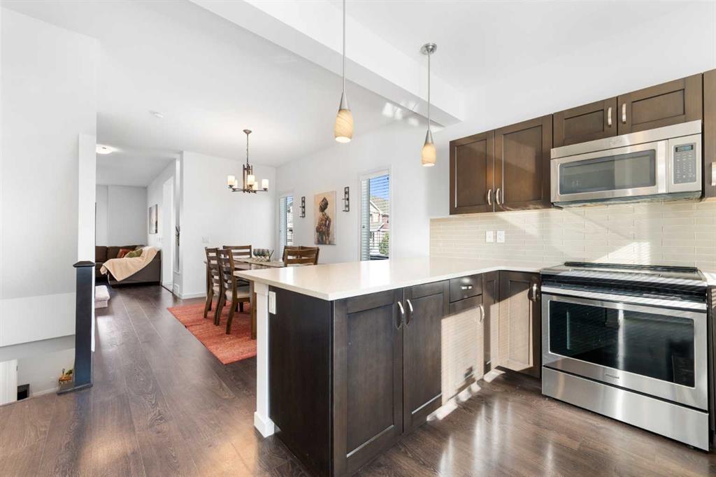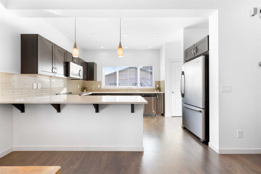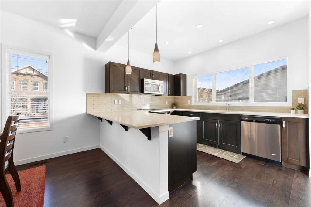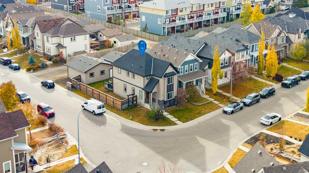 Welcome to a home that truly stands apart in the heart of Mahogany. Perfectly positioned on a fully fenced corner lot — and notably not a zero lot line — this beautifully maintained two-storey offers over 1,600 sq ft of thoughtfully designed living space above grade, exceptional natural light, and a layout that simply makes sense. From the moment you step into the open front foyer, you’ll appreciate the airy, contemporary feel. Expansive windows — including additional side yard windows — flood the home with sunshine, highlighting the upscale flooring and clean, modern finishes throughout. The main level is designed for everyday comfort and effortless entertaining. The fantastic kitchen features quartz countertops, abundant cabinetry, a peninsula island with eating bar, pendant lighting, LED pot lights, and a large window over the sink create a bright and inspiring space for cooking and gathering. The adjoining great room flows seamlessly, anchored by a gas fireplace with full tile surround — a warm and inviting focal point for cozy evenings. And tucked away is a \"pocket office\" - perfect for kids homework or working at home. Upstairs, the “king-sized” primary retreat feels like a private sanctuary, complete with vaulted ceilings, a large walk-in closet, and a full ensuite featuring a relaxing soaker tub and separate shower. An additional side window enhances the sense of space and light. Two more well-proportioned bedrooms complete the upper level, offering flexibility for family & guests. The basement was professionally developed in 2019 and adds versatility to the home, featuring a spacious bedroom, comfortable living room, and a full washroom — ideal for extended family, teens, or guests. Step outside to a generous south-facing backyard with a full-size covered deck, perfect for summer barbecues or relaxing in the shade. The oversized double garage measures an impressive 23x25, with approximately 200 square feet of attic storage accessible by ladder — a rare and practical bonus. Located in the award-winning lake community of Mahogany, you’ll enjoy four-season lake living with beaches, skating, paddleboarding, pathways, and parks — plus nearby schools, shopping, restaurants, and every amenity you need just minutes away. This is more than just a house — it’s a lifestyle opportunity in one of Calgary’s most sought-after communities.