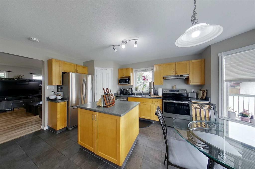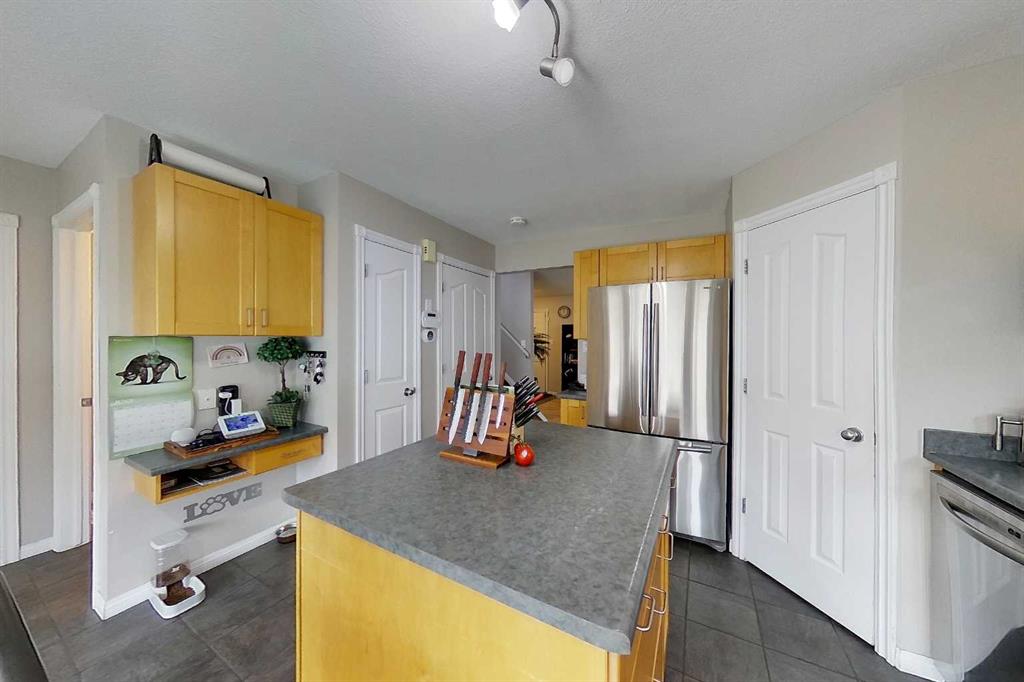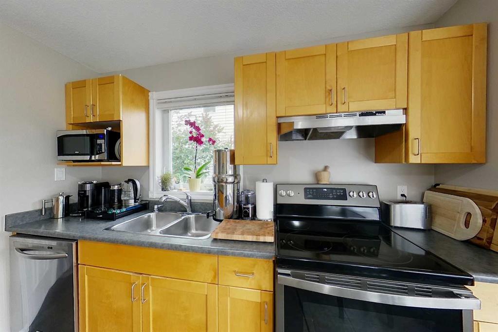 More Home Than You\'d Expect. Over 1,300 sq ft of smart, stylish living space across three levels — and every inch earns its keep. This move-in ready two-storey delivers 3 bedrooms, 3 bathrooms, and a layout that genuinely works for how people live today. The main floor opens into a bright, open-concept kitchen and dining space anchored by a large island with built-in power, stainless appliances, and a walk-in pantry — built for real life, not just showings. A cozy front living room, 2-piece bath, and direct backyard access round it out. Upstairs, the primary suite checks every box: walk-in closet, private 3-piece ensuite with glass shower, and real separation from the other two bedrooms. A full 4-piece bath serves the upper level. The basement adds a finished rec room, laundry, storage, and rough-in plumbing — future bathroom potential already built in. Out back: a fully fenced yard with a firepit, two storage sheds, rear alley access, and extra parking. Low-maintenance, high-enjoyment. Lovingly kept. Thoughtfully laid out. Ready for you.