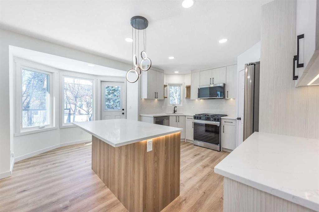 create elegant spaces for entertaining, while the cozy family room just off the kitchen offers the perfect everyday gathering space. A rare main-floor bedroom with its own 3-piece ensuite provides excellent flexibility for guests, extended family, or a private home office. A convenient 2-piece powder room completes the main level. Upstairs you’ll find a spacious primary bedroom retreat featuring a large, modern ensuite, along with two additional generously sized bedrooms and a full bathroom, creating a functional and comfortable upper level for family living. The fully developed basement adds around another 1,000 sq.ft. of additional living space, including two more bedrooms, a full bathroom, and plenty of storage, making it ideal for teenagers, guests, or extended family. Extensive upgrades make this home feel like new, including a new roof (2026), triple-pane windows, high-efficiency furnace, new water heater (2025), brand new kitchen and bathrooms, new appliances, and no carpet throughout. The west-facing backyard fills the home with natural light and features a large deck perfect for relaxing or entertaining in the evening sun. An insulated double attached garage and generous storage space complete the home. Located in one of NW Calgary’s most desirable and established communities, close to top-rated schools, parks, golf, shopping, and major routes, this beautifully renovated home offers an outstanding opportunity to own in The Hamptons.