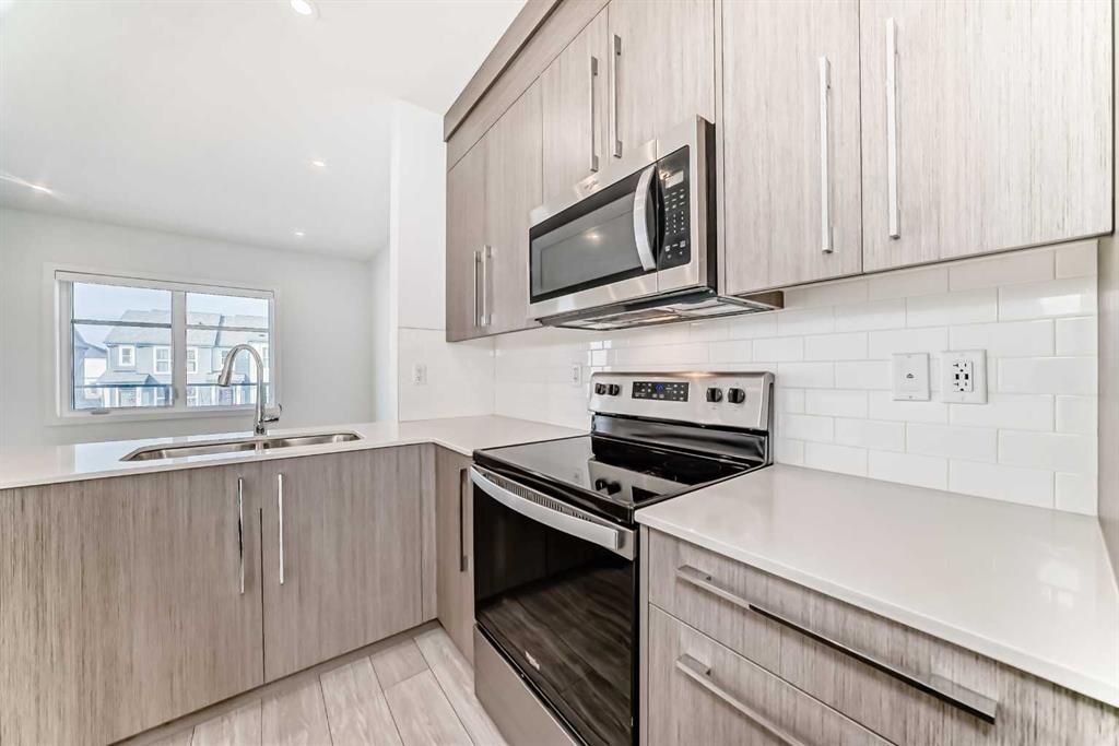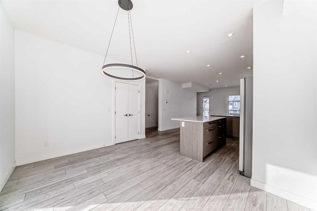 Welcome to this elegant, bright townhouse. This modern design allows for living at unbeatable location within the vibrant Savanna community in Saddle Ridge. The residence provides you with an open concept living space and features not one but two balconies. The entrance ground level introduces a den that can easily be converted to an office space if needed along with a double attached garage for convenient parking. The main floor seamlessly blends style and practicality with ample natural light cascading through large windows and additional pot lights illuminating the space. Luxurious vinyl plank flooring, a neutral color scheme, and upscale finishes enhance the allure. Enjoy relaxing in the inviting living room or step onto the adjacent balcony for tranquil mornings. The stunning kitchen inspires culinary delights, boasting quartz countertops, stainless steel appliances, full-height cabinetry, a timeless tile backsplash, and both a center island with eating bar for abundant prep space or a space to enjoy a quick bite to eat. The dining room offers ample room for entertaining, complemented by a convenient powder room. Upstairs, the primary suite creates an indulgent retreat with a high ceiling, oversized window, spacious walk-in closet, and a private ensuite. Two additional bright and roomy bedrooms share a modern 4-piece main bathroom. Laundry facilities on this level add further convenience. Nestled in the northeast community of Saddle Ridge, Savanna embodies smart growth principles, offering accessibility and a wealth of amenities, the home is location near extensive pathways, parks, and playgrounds within the community enriches the lifestyle. The Savanna Bazaar, a commercial hub, offers live-work-play opportunities, while schools, shops, and recreational facilities in Saddle Ridge are minutes away. Access to the rest of Calgary is effortless via major roads such as Metis Trail, Airport Trail, and the LRT when it\'s time to explore beyond the neighborhood.