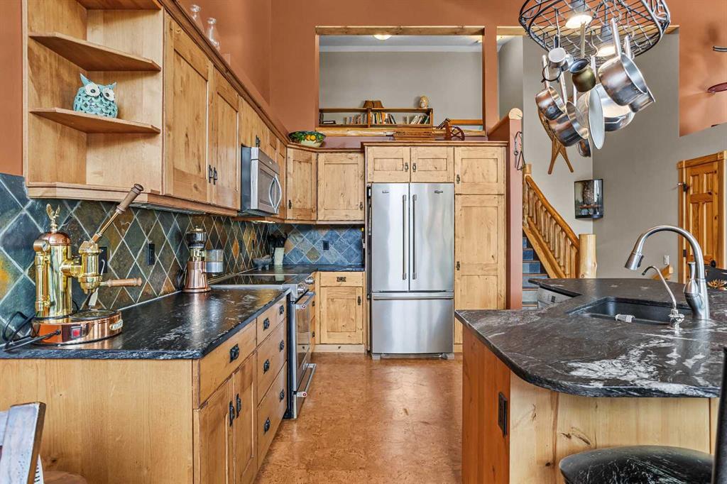 This 3 bed, 3-bath mountain retreat offers over 2,400 sq ft of beautifully designed living space, ideal for full-time living or as a luxurious getaway. Step into the main floor where soaring vaulted ceilings and expansive windows flood the open-concept living area with natural light. The gourmet kitchen is a chef’s dream, featuring stainless steel appliances, leathered granite countertops, abundant cabinetry, and a seamless flow into the dining and living spaces. A striking stone fireplace anchors the living room, creating a warm and inviting atmosphere, while the spacious deck invites you to soak in unobstructed mountain views. The private primary suite occupies its own floor—a true sanctuary complete with a walk-in closet, private deck, and a spa-inspired 4-piece ensuite. Enjoy quartz countertops, double vanities, and a large walk-in shower in this peaceful retreat. The second level includes two generous bedrooms, a full 4-piece bath, and a convenient laundry area. The lower level can be used as an illegal suite or additional living space for guests or multi-generational living, with its separate entrance, cozy living area, Murphy bed, bathroom, storage, and a handy countertop range. Step outside to a private backyard oasis with a hot tub, fire pit, and plenty of seating for entertaining under the stars. Whether you\'re enjoying a quiet evening by the fire or hosting friends on the deck with panoramic views, this home offers the perfect blend of comfort, luxury, and mountain lifestyle.