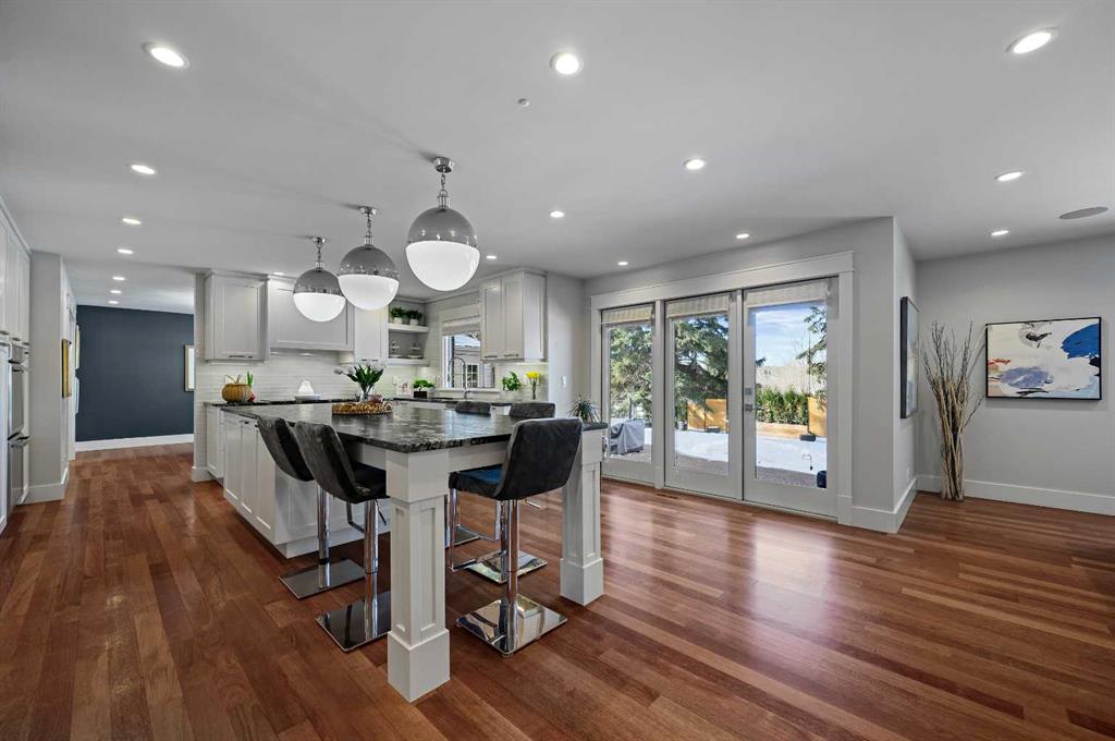 Located in the highly sought-after community of Bayview, this move-in-ready two-storey offers the opportunity to live in one of Calgary’s most coveted neighbourhoods. Extensively renovated, the home offers a functional layout with more than 4,200 sq. ft. of developed living space. A welcoming entry leads to a spacious living room with warm hardwood flooring, a bayed window and a gas fireplace. The dining room offers ample room for a large dining suite and a picture window overlooking a park-like rear yard. A gourmet kitchen is designed for everyday living and entertaining, highlighting warm painted maple cabinetry, stone countertops, a high-end appliance package, ample storage, and an oversized island with seating for six. An adjacent family room highlights a comfortable gathering space with an additional gas fireplace - perfect for family movie nights. French doors off the kitchen open to a fabulous private west yard, with a patio that creates a natural extension for outdoor living. Upstairs, your will discover four spacious bedrooms with park and mountain views. King-size furniture easily fits into the primary suite and includes a dream walk-in closet with built-ins and a five-piece marble ensuite with dual sinks, a soaker tub, and a separate shower. There are three additional secondary bedrooms, each with spacious closets, with one offering the added convenience of a private 3-piece ensuite. A five-piece family bathroom completes the upper level. The fully developed lower level offers additional space for entertainment with a third gas fireplace, plus room for a games area like pool or a ping pong table. There is a dedicated room for a home gym or potential fifth bedroom. The backyard opens directly onto the park, offering a seamless connection to the outdoors. The family can head straight into South Glenmore Park and experience the splash park on hot sunny days, play a game of tennis or bike on the pump track. The surrounding pathway system offers fabulous walking and running trails, cycling, and easy access to the sailing club. Additional nearby amenities include 2 shopping centers, Heritage Park, Southland Leisure Center and the JCC. The community is also home to highly regarded schools and is only a five-minute drive to The Rockyview General Hospital. This is more than a home, it’s a lifestyle that will be enjoyed in all seasons, year after year.