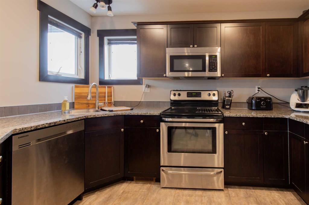 Fort Macleod bungalow home with accessible features! This home is a must-see if you\'re in the market for a turn-key home with enough room for the whole family and a layout you can customize for the long-term. Step inside and you\'ll be greeted by a spacious front foyer leading into the open-concept living and dining room which is perfect for entertaining. The kitchen boasts a wrap-around counter and breakfast bar as well as a convenient pantry. Down the hall you\'ll see two bedrooms, one of which featuring a laundry chute, and a full four-piece bath. The luxurious primary bedroom suite includes an accessible five-piece ensuite bath which was updated in 2020. Other recent updates include the flooring, trim, doors, and furnace. Downstairs, a huge rec room with a bar, three more bedrooms, and a four-piece bath are complimented by a laundry room and storage. Outside, the rear deck includes a hot tub hookup making a backyard that will be the perfect spot for family get-togethers and neighborhood barbecues.
