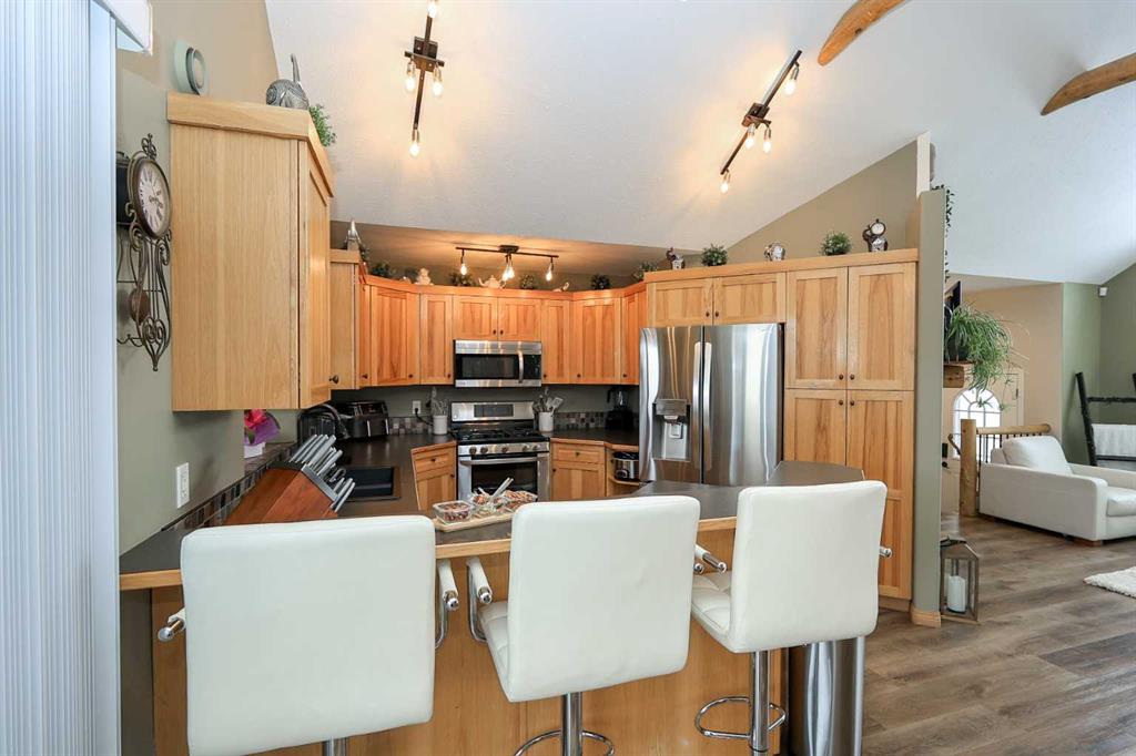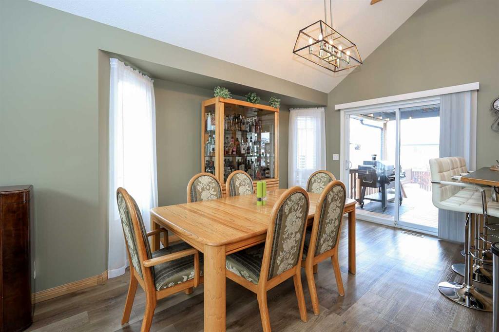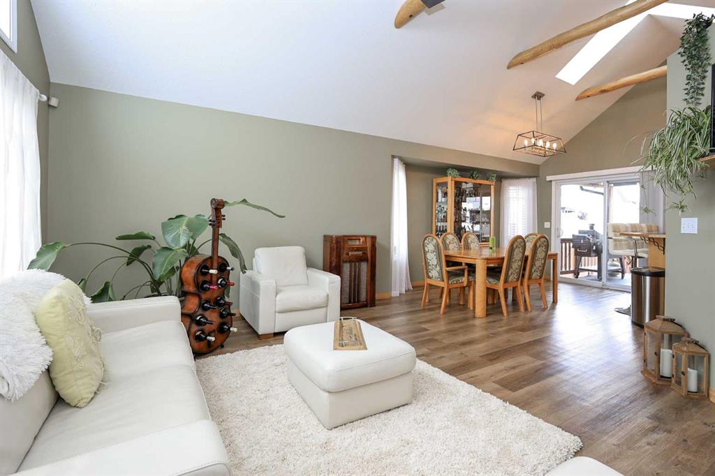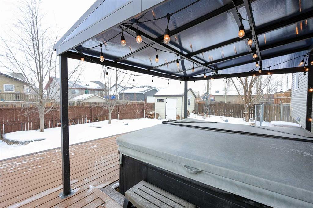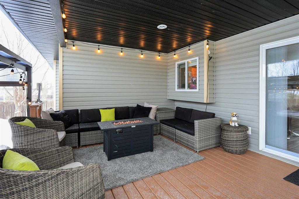 FULLY DEVELOPED BUNGALOW 5 BED, 3 BATH BUNGALOW ~ 24\' L X 22\' W HEATED ATTACHED GARAGE ~ LANDSCAPED BACKYARD W/A COVERED DECK, GAZEBO & HOT TUB ~ Bright and welcoming foyer leads to the open concept main floor with soaring vaulted ceilings and vinyl plank flooring ~ The living room features large south facing windows that fill the space with natural light and is centred by a cozy gas fireplace with floor to ceiling stone ~ Easily host large gatherings in the dining room with garden door access to a covered 16\' x 11\' deck with a BBQ gas line, and a 20\' x 17\' lower deck with a gazebo and hot tub ~ The kitchen features a sky light and offers an abundance of light stained hickory cabinets, ample counter space including a raised eating bar, full tile backsplash, and stainless steel appliances ~ The primary bedroom can easily accommodate a king size bed, has dual closets and a 3 piece ensuite with a 5\' walk-in shower ~ 2 additional main floor bedrooms are both a generous size with ample closet space ~ Conveniently located main floor laundry just off the bedrooms ~ 4 piece main bathroom has an oversized vanity and linen closet ~ The fully finished basement with operational in floor heat offers a large family room with a media space and bar area with cedar panelling, plus two large bedrooms (one with a walk-in closet/dressing room), 4 piece bathroom with a 6\' jetted tub, and ample space for storage ~ Other great features include; central air conditioning, central vacuum, water softener (2024), sky light and sun tube, permanent exterior LED lighting ~ The 24\' L x 22\' W attached garage is heated, insulated, finished with painted drywall and cedar, has high ceilings and tons of built in cabinets ~ The backyard is landscaped, has a garden shed, fire pit, and is fully fenced with a fenced in dog run and back alley access ~ Located close to schools, parks and walking trail, steps to multiple shopping plazas with all amenities, easy access to the beach/Lakeshore and highways ~ Pride of ownership and move in ready!