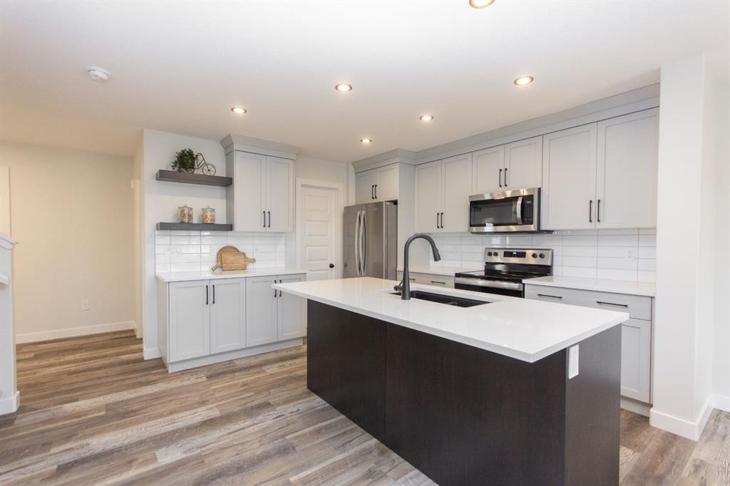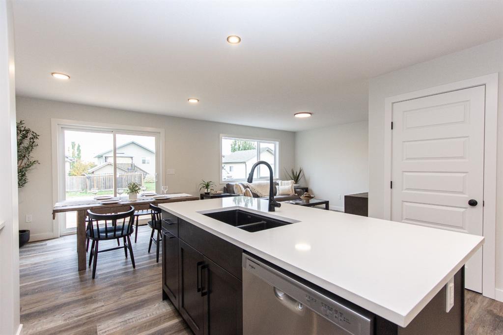 This brand new Laebon built home in beautiful Meadowlark Estates could be your new home! Situated only steps from a playground reserve and a huge park, and within walking distance to the high school, this home is the perfect place for a growing family. Offering 1707 square feet, this best selling 2 storey floorplan offers a wide open main floor layout, an attached double garage, and a large second floor bonus room. The kitchen is well appointed with two toned raised cabinetry, stainless steel appliances, quartz countertops, a large island with eating bar, and a large walk in pantry. The living area is spacious and bright, and the adjacent dining area offers access to the back deck through large sliding patio doors. Upstairs you\'ll find the spacious master bedroom suite with a large walk-in closet, and your own private 4 pce ensuite. Two kids rooms share a 4 pce bathroom, and you\'ll appreciate the convenience of upper floor laundry close to all the bedrooms. You\'ll love ending your day in the huge bonus room, which makes the perfect space for family movie nights or a relaxing space to wind down. The attached garage is insulated, drywalled, and taped. If you need more space, the builder can complete the basement development for you, and allowances can also be provided for a washer and dryer to make this a completely move in ready package. Poured concrete front driveway, front sod, and rear topsoil to grade are included in the price and will be completed as weather permits. 1 year builder warranty and 10 year Alberta New Home Warranty are included. Taxes have yet to be assessed. This home has an estimated completion date of mid April 2026. Photos and renderings are examples from a similar home built previously and do not necessarily reflect the exact finishes and colours used in this home.