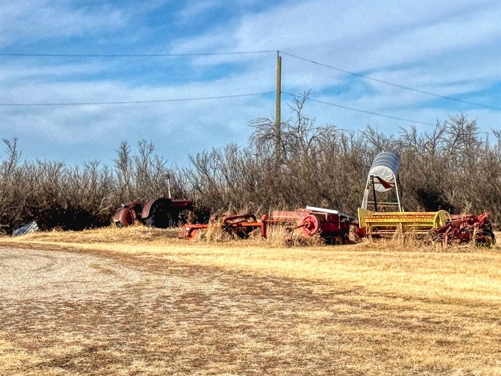 Looking for that larger acreage?? check out this one with 19 acres, older home, and a decent barn. Barn roof has been tinned. The home is nestled in and sheltered from weather by lilacs, imagine the aroma when they are in bloom. Home has a good sized eat in kitchen and large living room, two bedrooms on main floor and a craft room that could be third bedroom in basement. Some corrals and fencing in place, bring your horses and move in. Currently water comes from well, Municipal water is available at the road. Included are several pieces of equipment including 3 older tractors, a haybine, , baler, bale elevator and rake. all equipment has been used in last few years but is offered as is. Both sea cans 8x40 and 8x20 are included as well as the red fifth wheel trailer. Updates include new shingles 2022 on house quonset and workshop, Soffits, fascia, and eaves troughing 2022, House doors and windows and siding 2022, HWT 2025 Furnace 2023.