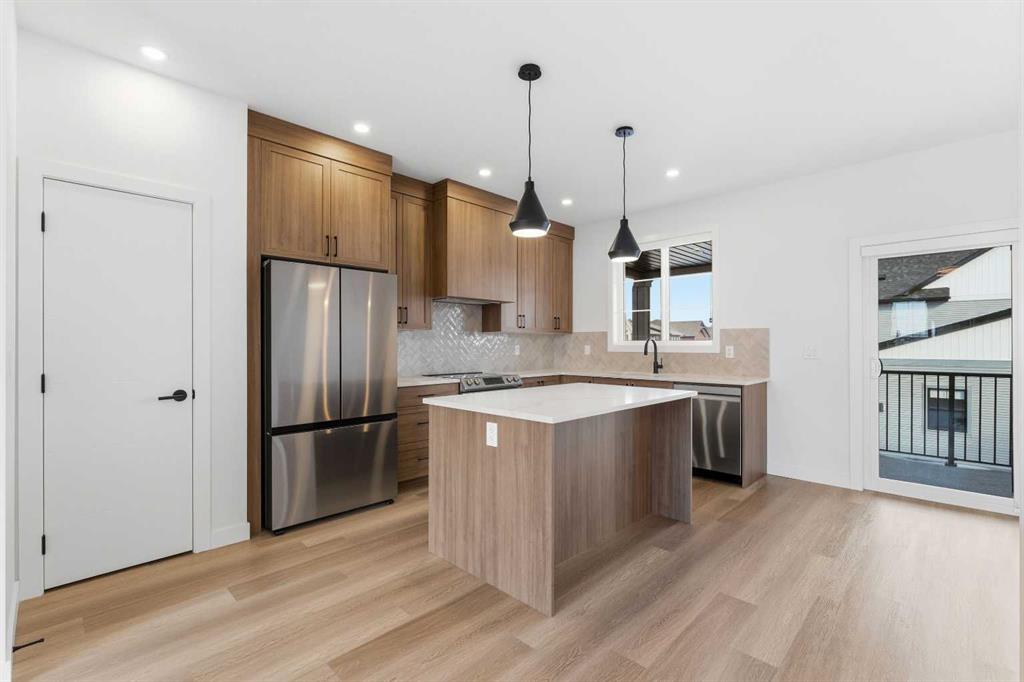 A sophisticated award winning END Unit 3-storey a Vesta Elevate Collection nested in Cooper’s Crossing, an 13th-time recipient of Airdrie’s \"Best Community\" award. This modern masterpiece seamlessly blends contemporary architecture with upscale interior finishes, offering a versatile layout that includes 3 bedrooms, 2.5 bathrooms, and a ground-floor flex room perfect for a home office or gym. The heart of the home is a bright, open-concept main floor anchored by a gourmet kitchen featuring full-height cabinetry, sleek modern finishes, and generous prep space that flows effortlessly into the dining and living areas. Upstairs, the deluxe primary suite serves as a private retreat, complemented by secondary bedrooms that are impressively oversized compared to typical townhome designs. Beyond the stylish interior, this home boasts a rare and highly coveted parking setup: a double attached garage plus two additional private driveway stalls. Perfectly positioned across from Cooper’s Town Promenade, you’ll enjoy walkable access to Starbucks, Save-On-Foods, and local dining, while nearby parks and school. This the ultimate low-maintenance sanctuary for professionals and families alike who refuse to compromise on convenience for \"elevated\" living.