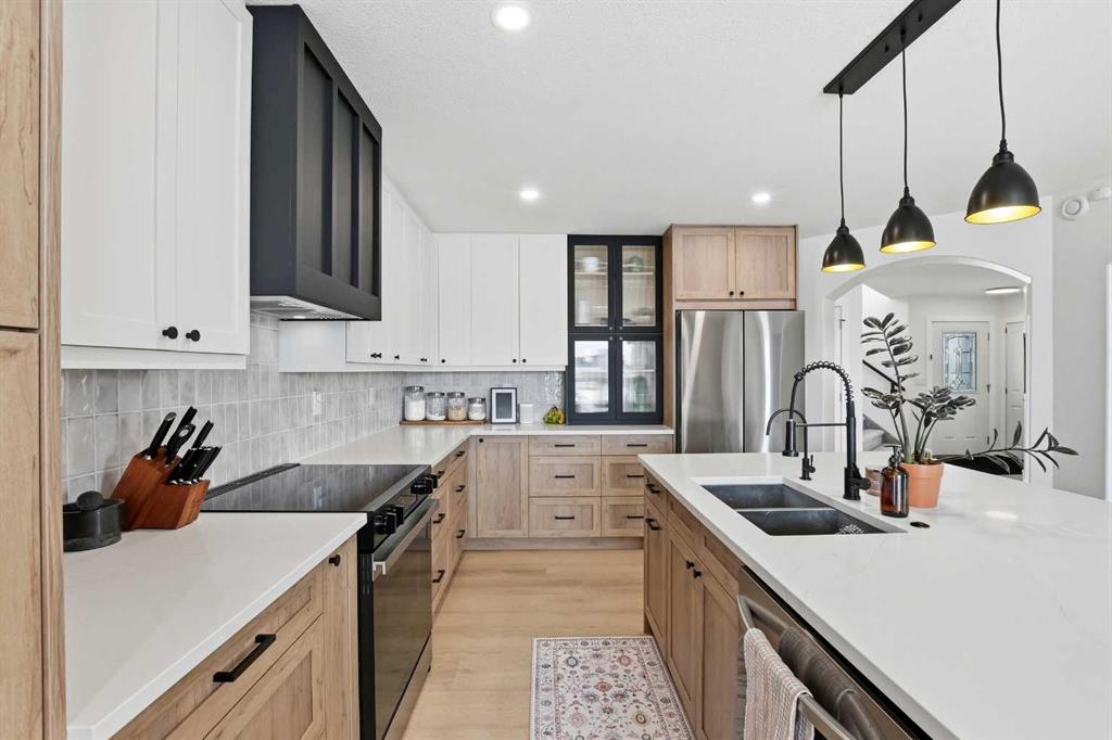 BEAUTIFUL 4 BDRM HOME BACKING ONTO A PARK! Fully updated and move-in ready! Welcome to this stunning 4 bedroom, 4 bathroom home perfectly located with direct access to the green space behind. Spacious and well cared for, it has been thoughtfully updated throughout and has all the extras - fireplace, air conditioning, central vac, in floor heat, hot water on demand, water softener, and more! The AMAZING custom kitchen is the heart of the home, featuring pantry pullouts, black accent cabinets with in-cabinet lighting, a 7ft+ island with back cabinets, garbage pullout, garburator, osmosis water filter in island, new appliances with ice and water in fridge, multiple USB plug ports, and the sweetest coffee bar! Large living areas provide plenty of room to relax or entertain while enjoying the private green space views. The main floor also offers laundry, 1/2 bath and a great size front entry. Upstairs you will find a big primary with walk-in closet and ensuite, 2 nice-size bedrooms and a full 4 pce bath. Down is a huge family room, office nook, bedroom, 3 pce bathroom and lots of storage. Step outside to your two-tiered deck with a Swim Spa, kids\' playset and the wide open space! This is a rare opportunity to own a beautiful home in an incredible location - your chance to enjoy space, comfort, and nature right outside your door! The Collicutt Center, schools and shopping are all nearby in this terrific neighbourhood!!
