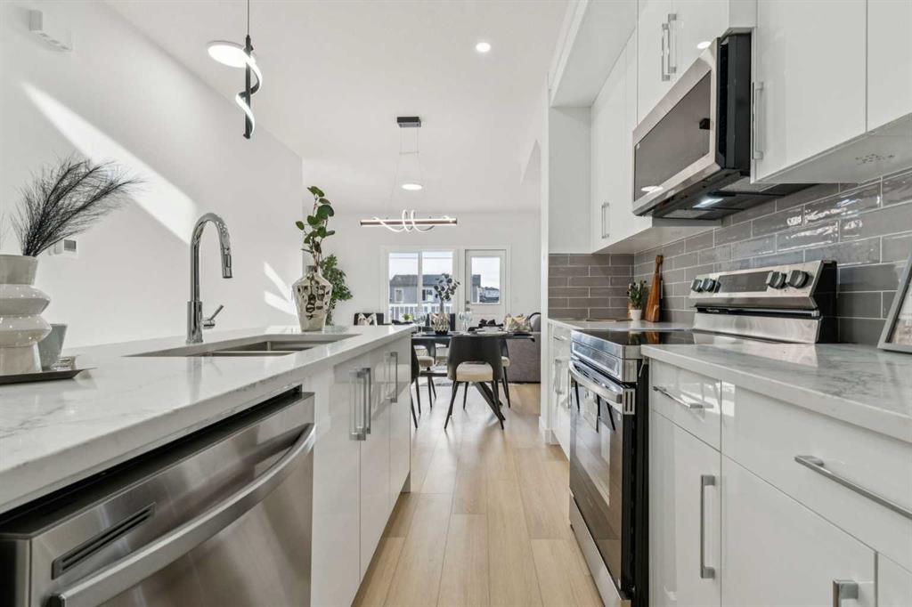 MOVE-IN READY WITH IMMEDIATE POSSESSION | LIMITED-TIME BUYER INCENTIVE | NO CONDO FEES FOR 2 YEARS IF FIRM BEFORE APRIL 30 | EXCLUSIVE LIMITED-TIME PRICING ON THIS UNIT ONLY | 4 BED + DEN, 4 BATH TOWNHOME | TOTAL 1836 SF | MAIN-FLOOR PRIVATE GUEST SUITE | Welcome to Unit 203 at Saddlecrest Living, a brand-new townhome in a 43-unit community in Calgary’s Northeast. This spacious home offers 4 bedrooms, a den, and 4 full bathrooms across three levels with an attached garage. A key feature is the private guest suite on the main floor with its own full bathroom and separate rear entrance, ideal for extended family, guests, or potential rental income. The main living area features an open layout with 9-foot ceilings and large triple-pane windows that bring in natural light while improving energy efficiency. The kitchen includes floor-to-ceiling cabinetry, quartz countertops and stainless steel appliances for a clean and modern design. Upstairs bedrooms provide comfortable space for families, while luxury vinyl plank flooring on the main level offers durability and easy maintenance. The exterior uses durable stucco and Hardie siding designed for Calgary’s climate, providing strong hail protection and a major advantage for homeowners and insurance considerations. Saddlecrest Living is located in a family-friendly community close to schools, parks, Saddletowne LRT, shopping, medical clinics and fitness centres, with quick access to Stoney Trail, Calgary International Airport, Costco, CrossIron Mills and New Horizon Mall. Opportunities to purchase a brand-new four-bedroom townhome at this price in the community are extremely limited. Images are of a similar middle unit in the same building and are for illustrative purposes only.
