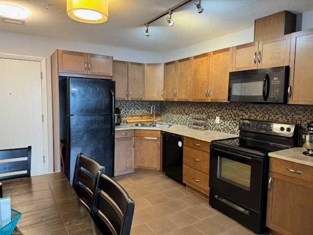 The well-designed kitchen features solid maple cabinetry, black appliances, and a mosaic tile backsplash, opening to a bright and spacious living area that’s perfect for both everyday living and entertaining. The thoughtfully designed layout offers two bedrooms and two full bathrooms, with the living space ideally separating the sleeping areas for added privacy.