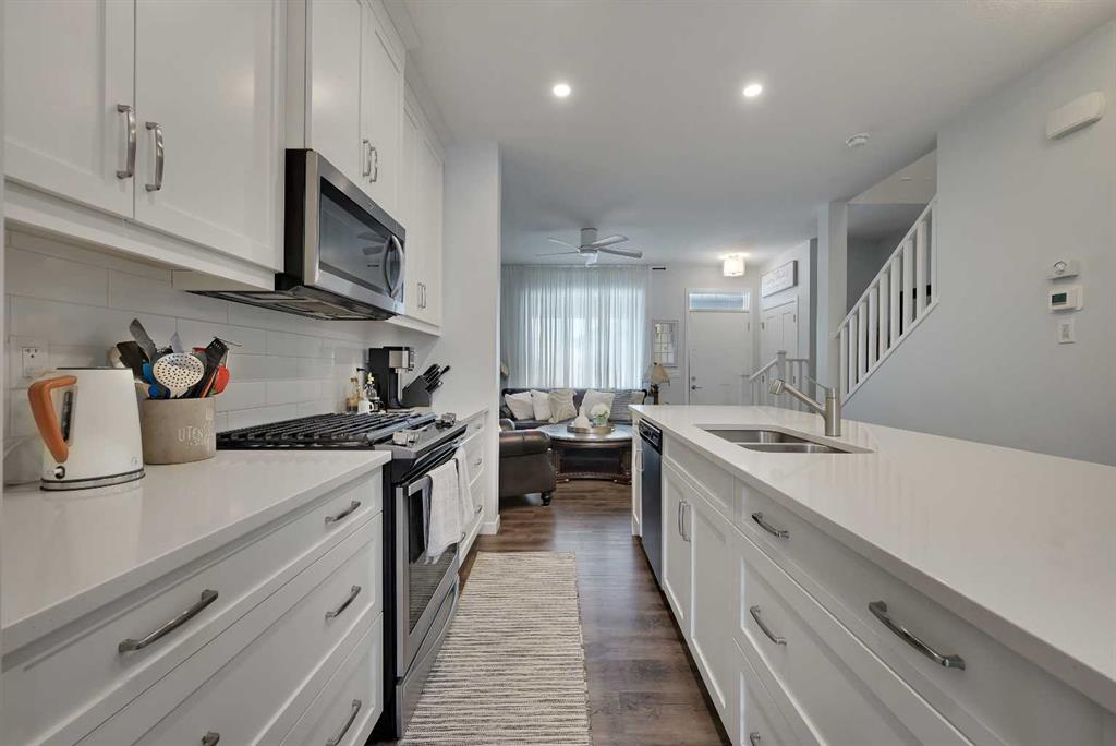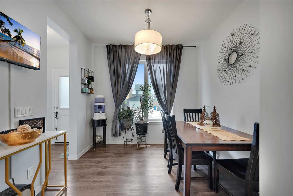 Stunning Fully Upgraded Two-Storey Home in Crossfield (1,905sq ft Total Developed) This beautiful, fully finished two-storey home at 221 Ellen Way combines modern style, thoughtful upgrades, and exceptional curb appeal with a charming front porch, located in the welcoming and growing community of Crossfield. This Dream Built Homes “Noah” model features over $40,000 in upgrades and is designed to impress. Step inside to an airy main floor highlighted by 9-foot ceilings, luxury vinyl plank flooring, and large triple-pane windows that flood the home with natural light. A charming faux fireplace creates a cozy focal point, while the upgraded kitchen is a striking centerpiece, featuring a 9-foot quartz island, floor-to-ceiling shaker-style cabinetry, stainless steel appliances, and a gas range. Soft-close cabinetry and a walk-in pantry provide both style and functionality. The main floor also includes a rear dining area perfect for entertaining and a convenient 2-piece powder room. Upstairs, the spacious primary suite comfortably fits a king-sized bed and includes a walk-in closet and stylish barn door leading to the ensuite with a stand-up shower tiled to the ceiling. Two additional well-sized bedrooms offer beautiful mountain views, complemented by a full 4-piece bathroom and a laundry room for added convenience. The fully finished lower level provides a versatile family or recreation room, an additional bedroom, and a 4-piece bathroom, ideal for guests, extended family, or a home office. Step outside to the back deck, overlooking the nearly finished, brand-new fenced backyard, offering ample room to relax, entertain, or create your dream outdoor space. Residents of Crossfield enjoy exceptional community amenities, including garden boxes, approximately 4 km of walking trails, 5 acres of protected wetlands, and over 20 acres of green space. Outdoor enthusiasts will appreciate the hockey rink, skateboard park, sports fields, stocked fishing pond, splash park, playgrounds, and picnic areas with fire pits. This home presents an exceptional opportunity to own a move-in-ready, fully upgraded home in a thriving, family-friendly community. Thoughtful design, quality finishes, and flexible living space throughout make it perfect for modern family living, entertaining, or a home office.