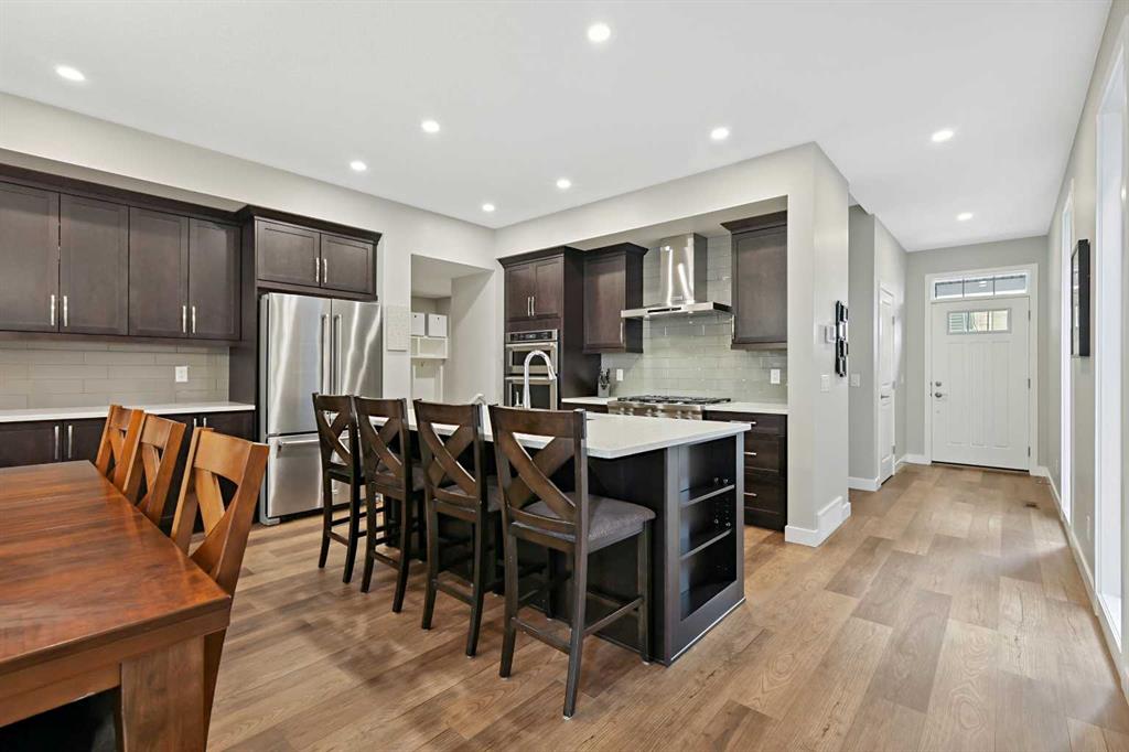 ** Quick Possession - Move in ready ** Custom Jayman BUILT home - Award Winning Madeline 24 Model ** Family Approved ** SOUTH BACKYARD ** Extensive upgrades and superior quality, with over 2338+ square feet of luxurious Air-Conditioned living space. You will be impressed with the privacy of an oversized homesite featuring a private, south-west-facing backyard with a bespoke 10\' x 10\' upper deck and a lower 18\' x 11\' concrete patio and gazebo. Enjoy this convenient Seton Location - steps away from ponds, parks, pathways, schools, shopping, soccer fields, bike paths, transit, a clubhouse, 212 Avenue, and expressways. Rich curb appeal with architectural features - dramatic rooflines, an attached garage, and a full-sized concrete driveway, along with covered entry and columns, complete this spectacular elevation. There are extensive upgrades throughout, and the details are superb. This is a must-see home! Chef’s kitchen includes quartz countertops, custom light & dark wood style cabinets/doors, extension trims, KitchenAid stainless steel fridge/dishwasher/microwave/wall oven, six burner gas cooktop, recessed lighting, oversized central island, island with a flush eating bar & brown Silgranit undermount sink, walk-in 7.5\' x 5\' butlers pantry with storage & a large central breakfast nook. The main floor layout features an office/den, a family room with an electric fireplace and stone detailing, a family-sized open foyer with a side window, and rich, wide-plank LVP floors that run from the front entrance through the main floor, stairs, and the upper level. The large mud room provides additional storage lockers and offers easy access to the garage. Upstairs, you\'ll find the upper three bedrooms, a bonus room, and a laundry room. The primary bedroom suite includes his-and-hers vanity sinks, a massive walk-in closet, an easy connection to the upper laundry room, an oversized shower with a glass door, and a gorgeous soaker tub to complete this stunning spa-like en-suite. BONUS: The unfinished basement provides ample space for all your plans. Plus, smart home technology, 6 solar panels, Navien tankless water heater, 9\' main floor & high basement ceilings, generously sized bedrooms with large windows, future radon basement piping rough-in, plumbing/lighting, and electrical fixtures upgraded! Don’t miss this opportunity. Call your friendly REALTOR(R) to book your viewing right away!