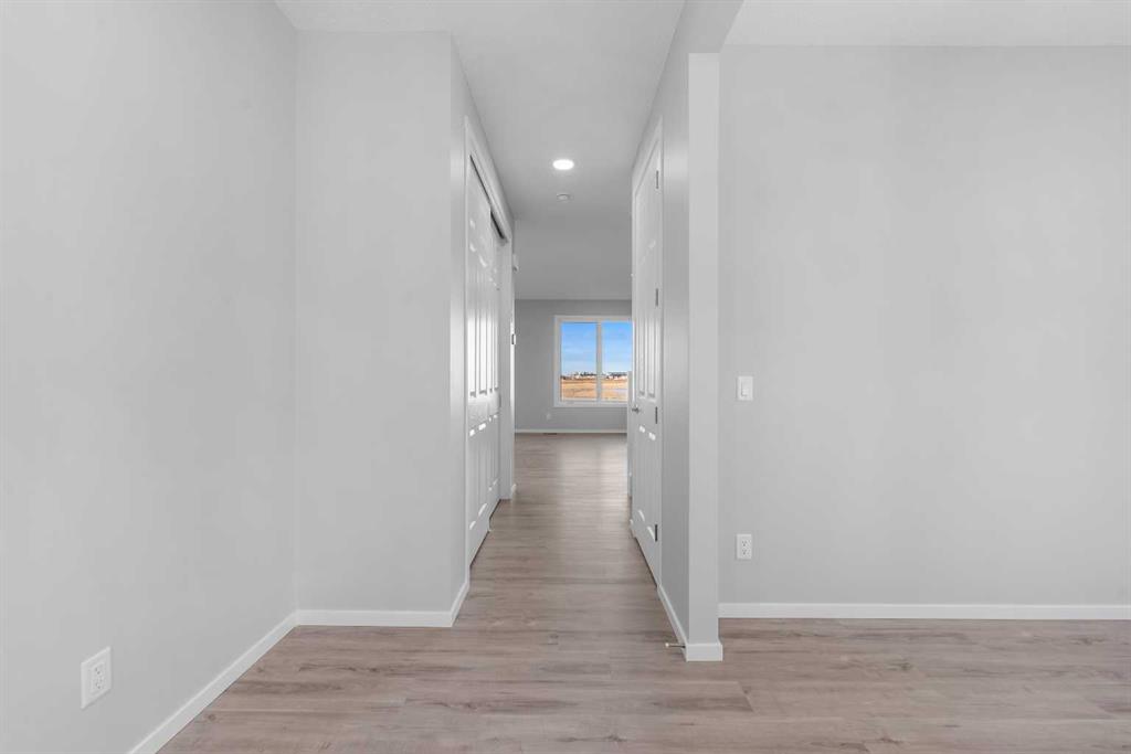 The Maclaren opens into a welcoming foyer and front den before transitioning into a spacious main living area. The main floor is finished with upgraded 8\' doors and luxury vinyl plank flooring throughout . The kitchen wows with a wealth of full-height cabinets, stainless steel chimney hood fan and an oversized quartz island and breakfast bar that connects seamlessly to the dining and great room with fireplace. A pantry, powder room, and mudroom enhance daily functionality. Upstairs, the primary bedroom is a true sanctuary and includes a walk-in closet and private ensuite with dual sinks and glass shower enclosure, offering comfort and privacy. The upstairs laundry room and main bathroom are centrally located. 3 additional sizable bedrooms give everyone in the family a place to call their own. A separate side entrance and 9\' foundation have been added for the benefit of any future basement development plans.