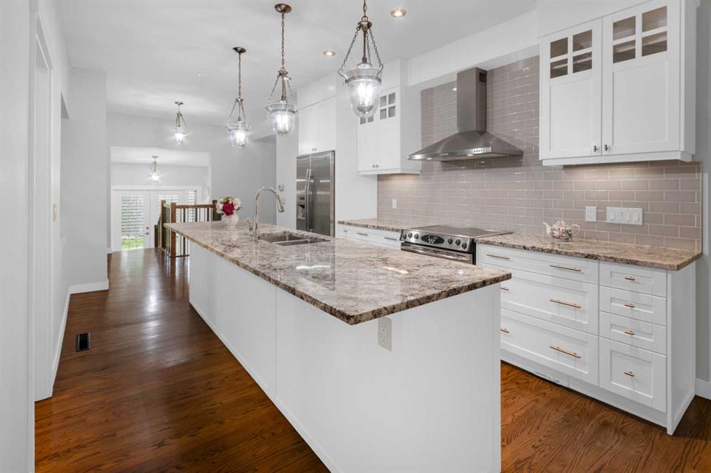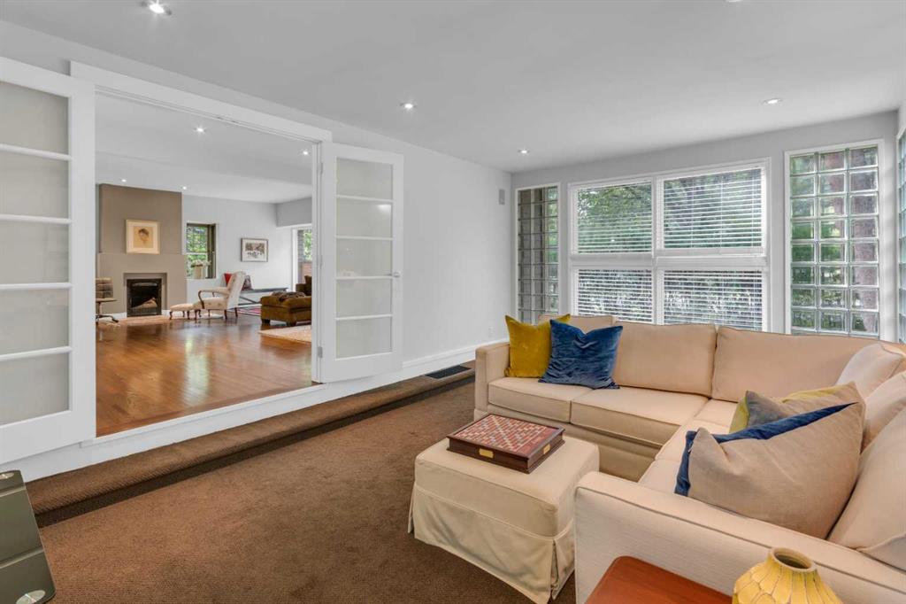 Nestled on a picturesque tree-lined street just steps from the Glencoe Club, this charming 2-storey home offers 2,661 sq ft of spacious living. Featuring 3+1 bedrooms and 3.5 bathrooms, the open-concept main floor welcomes you with a wall of windows leading to a west-facing patio perfect for entertaining. The main level includes a generous living and dining area, a cozy family room, and an open kitchen with a center island. The master suite features a sitting area large walk in closet and a 5-piece ensuite with dual sinks. The fully finished basement includes a triple-safe waterproofing system for added peace of mind. Outside, enjoy a double detached garage and easy access to a paved lane. Located just half a block from scenic river pathways, parks, and minutes from downtown, this home is close to top schools like Western Canada, William Reid, and Earl Grey.