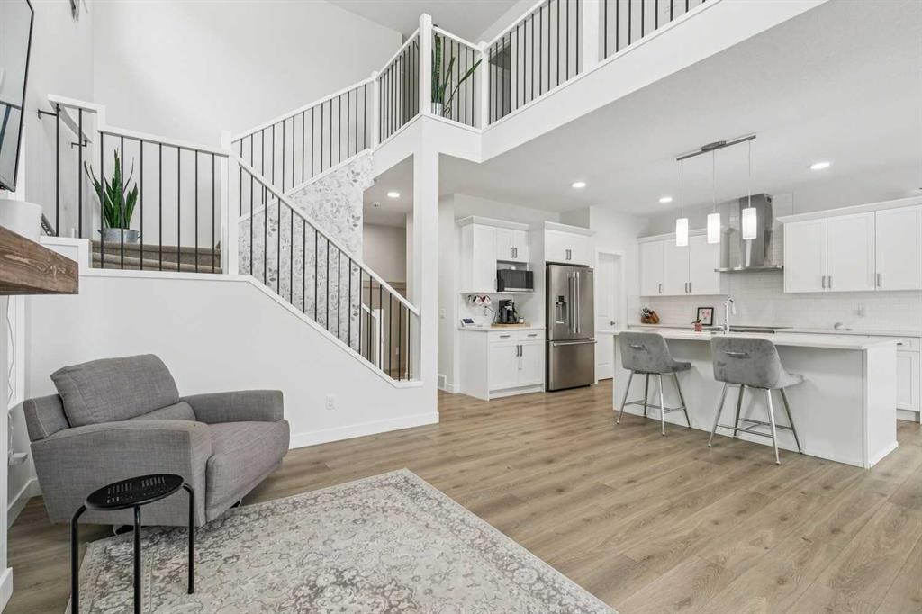 SPACIOUS 2200+ SQ FT FAMILY HOME IN HEARTLAND! This beautifully designed two-storey offers modern comfort and thoughtful functionality throughout. The bright open-concept main floor features quartz countertops, a large kitchen with walk-through pantry, and a stunning open-to-below design that fills the home with natural light. Several tasteful cosmetic upgrades add style and warmth throughout the home. A main floor den provides the perfect space for a home office or study. Upstairs you’ll find a spacious bonus room, convenient upper-floor laundry, and three well-appointed bedrooms including a huge primary retreat with walk-in closet and a luxurious 5-piece ensuite. Two additional bedrooms and a full 4-piece bathroom complete the upper level. The home also includes a separate side entrance to the basement, offering excellent potential for future development and a double attached garage. Outside, enjoy a fully landscaped and fenced yard ready for relaxing or entertaining. Located in the vibrant community of Heartland in Cochrane, close to parks, pathways, schools, and amenities.