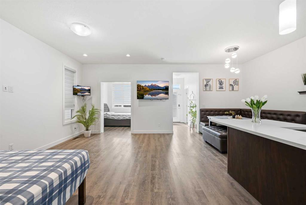 Step into a bright, open-concept masterpiece designed for the modern lifestyle. The main level immediately impresses with two distinct living areas, offering the perfect balance for a formal sitting room and a cozy family lounge. The heart of the home is the upgraded gourmet kitchen, featuring premium cabinetry and sleek finishes that will delight any home chef. Uniquely, this floor includes a rare main-floor bedroom and a full 4-piece bathroom, providing an ideal setup for guests, seniors, or a private home office. Ascend to the second floor, where the central bonus room serves as the ultimate family hub. Bathed in natural light from two stunning skylights, this space feels airy and expansive. The primary suite is a true sanctuary, complete with a private ensuite bathroom and a spacious walk-in closet. Two additional generously sized bedrooms and a convenient upper-floor laundry room ensure effortless daily living for the whole family. The fully finished basement ( Ill-legal ) serves as a versatile lower level with a separate entry and its own dedicated laundry. This space includes a large living area, a full bathroom, and two additional bedrooms, making it an ideal setup for extended family or a private retreat. Step outside to a fully fenced, low-maintenance backyard designed for relaxation, not yard work. Enjoy summer BBQs on the spacious deck and take advantage of the oversized detached garage, offering extra room for larger vehicles or a workshop. Situated in the heart of Cornerstone, you are minutes from all major banks, top-rated schools, and pristine parks. Food lovers will appreciate the proximity to the Highstreet and a vibrant array of Asian grocery stores and restaurants. With easy access to Stoney Trail and the Calgary International Airport, this is the perfect north-east location.