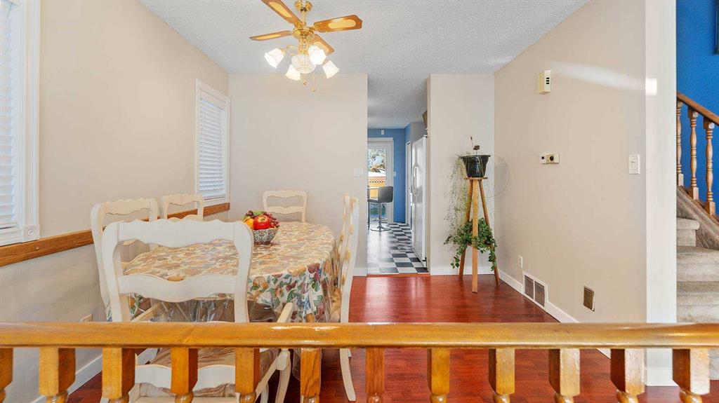 The main floor features a cozy sunken living room with a wood-burning fireplace, perfect for relaxing evenings. You’ll also find a bright dining area, a private kitchen with a charming eat-in nook—ideal for morning coffee—and the convenience of main floor laundry. A 2-piece bathroom and plenty of storage add to the home’s thoughtful layout.