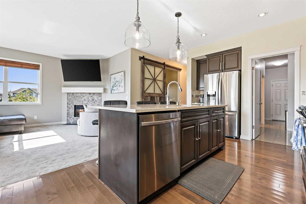 Searching for a 3-bedroom detached home in Auburn Bay with pond views and a sun-filled backyard? 415 Auburn Bay Avenue SE offers over 2,200 sq. ft. of living space, desirable south and west backyard exposure for all-day light, and direct access to pathways, schools, and the lake. You’ll immediately appreciate the home’s unique positioning, with no neighbours on the west side—providing added privacy, extra natural light and direct views of the adjacent green space. From the front steps, enjoy watching Auburn Bay’s annual Christmas parade pass by and create lasting family traditions. Inside, the bright and thoughtfully designed main floor centres around a spacious kitchen featuring stainless steel appliances and quartz countertops. The layout flows seamlessly into the dining and living areas, ideal for everyday family living and entertaining. At the rear of the home, large windows showcase the backyard, where the south and west exposure fills the space with sunlight throughout the day. Step onto the deck to take in peaceful pond views, access the walking path directly, and enjoy watching the Community\'s seasonal fireworks reflect over the water. Upstairs, the primary bedroom offers stunning mountain views and serves as a relaxing retreat, complete with a five-piece ensuite. New carpet throughout and new tile flooring in the bathrooms adds a stylish and modern touch, while two additional bedrooms provide comfortable space for children, guests, or a home office. With over 2,200 sq. ft. of living space and walking distance to top-rated schools, shopping, restaurants, and Auburn Bay Lake, this three-bedroom detached home delivers the light, lifestyle, and location families seek in one of Calgary’s most desirable lake communities. Book your private showing today!