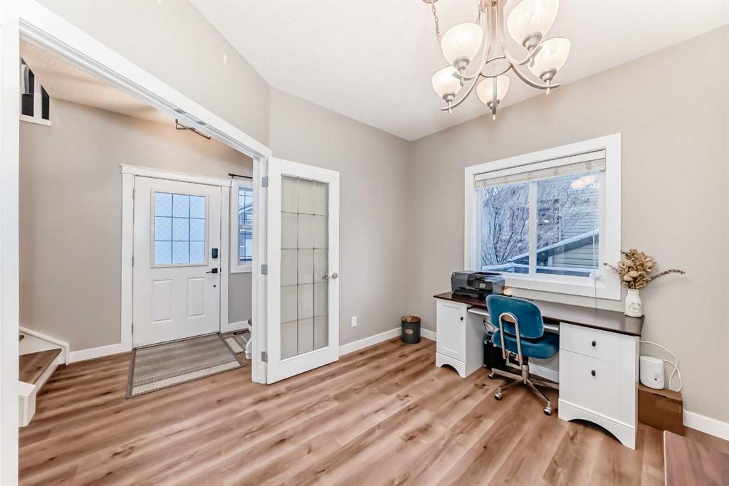 features major recent upgrades, including a new roof in 2021 for ultimate peace of mind. Step inside to a refreshed main floor showcasing brand-new LVP flooring, a designated office/flex space, and convenient main-floor laundry hookups. The open-concept living area is an entertainer\'s dream, featuring a kitchen with quartz countertops and a large pantry, a dining area that opens to your beautiful backyard oasis, and a cozy living room anchored by a gas fireplace. Upstairs, you\'ll find an oversized bonus room complete with an electric fireplace and stunning mountain views. The spacious primary suite is a true retreat with a 5-piece ensuite and walk-in closet. Two additional good-sized bedrooms and another full bathroom complete the upper level. The fully finished basement provides even more living space, offering a family rec room, a wet bar, a flex room, ample storage, and a 3-piece bathroom. Perfectly located close to parks, pathways and a beautiful golf course. Enjoy the best of quiet, small-town living with a quick and easy commute to Airdrie and Calgary. This one is a must-see!