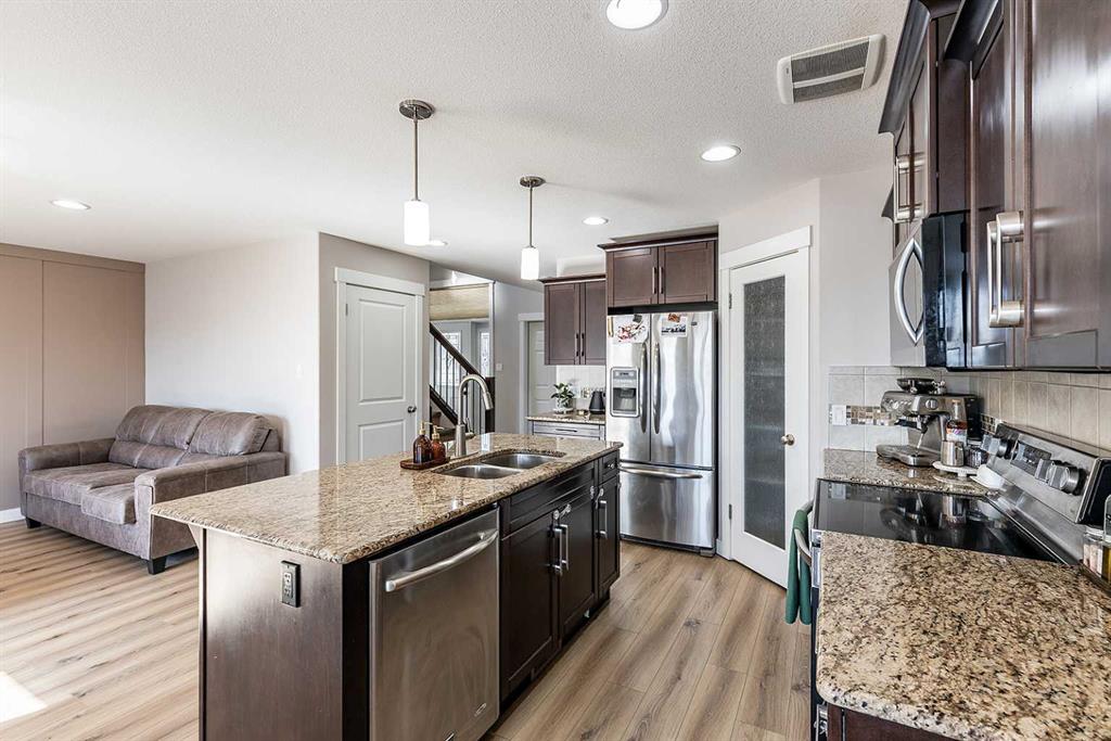 Welcome to one of the city\'s most family-friendly neighborhoods , with a classic two-storey layout and a fully developed basement. Welcome to 11 Sterling Link Southeast , a 1,719 square foot beauty close to parks, schools and walking paths on the south end of town. The home has great curb appeal with an extended front drive and a double attached garage in the front. The front foyer opens up to a great layout, the main floor is flooded with natural light with a fully equipped kitchen. Stainless steel appliances , granite countertops and and a corner pantry complete the kitchen that opens into the living space and access to the covered deck. The upper floor has 3 bedrooms including a great primary suite with ensuite and walk-in closet. The basement is fully developed with room for another bedroom if you need, but is currently a great spot for family time or to lay back and watch a movie or the game. The yard is a great size for the area with a shed included for extra storage. Come see if this home could be the one for you , contact your preferred agent today.
