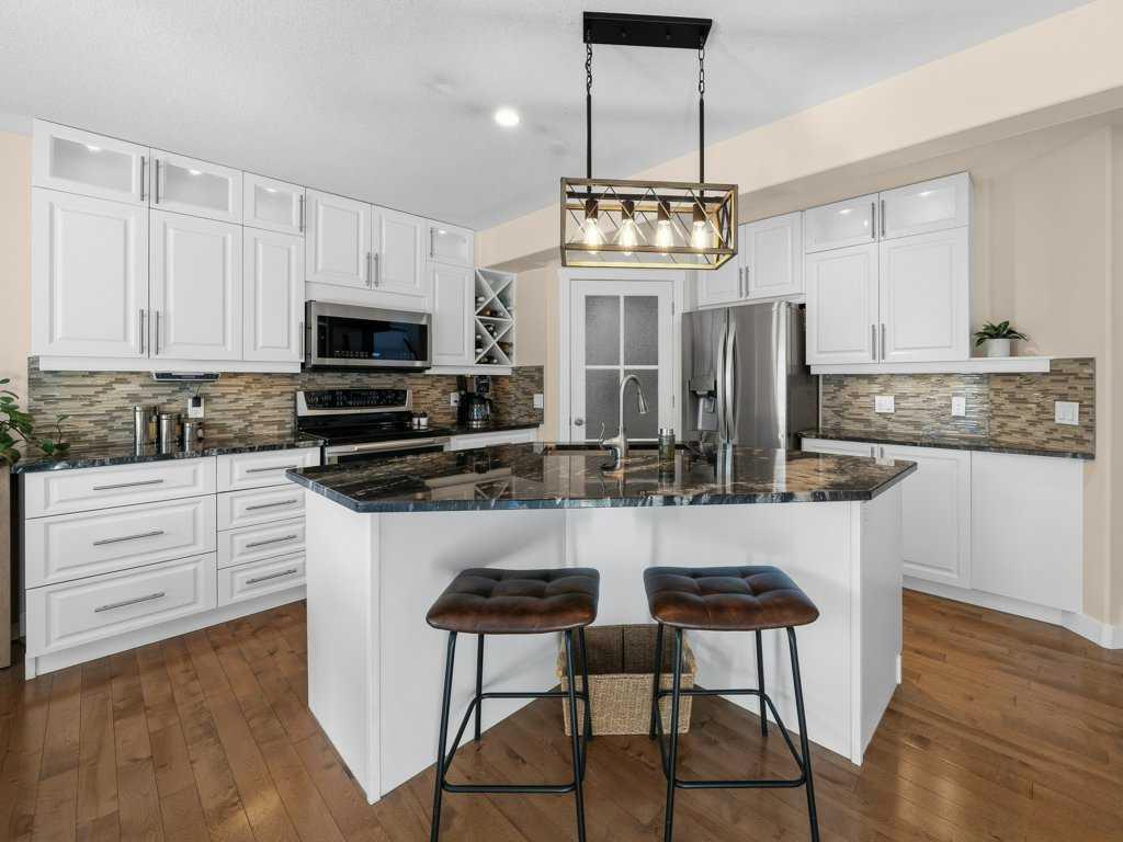 **OPEN HOUSE SAT & SUN MARCH 7th & 8th 2 to 4 PM** Located on the estate side in the established community of Douglasdale, this beautifully renovated, air-conditioned home blends thoughtful design, modern upgrades and a functional family layout in a location surrounded by parks, pathways and everyday amenities. An inviting chic patterned tile entry welcomes guests and rich hardwood flooring continues throughout the main level while designer lighting enhances the bright open floor plan. Designed with both beauty and practicality in mind, the modernized kitchen showcases stainless steel appliances, extended full-height cabinetry for exceptional storage with chic upper and under cabinet accent lighting, a walk-thru pantry and a large centre island that naturally gathers family and guests for casual meals or conversation. Adjacently, the dining area connects seamlessly to the backyard, encouraging an effortless indoor and outdoor lifestyle for everyday living and entertaining. Comfortable evenings unfold in the living room where an updated fireplace creates a warm focal point while oversized windows frame backyard views and flood the main floor with natural light. A strikingly renovated powder room elevates the main level with statement wallpaper, wainscotting and designer fixtures that add personality and charm. Everyday functionality continues with a well-equipped main floor laundry room offering abundant cabinetry and storage for busy households. Renovations continue upstairs where a cozy reading nook with built-in window seating provides a quiet retreat for morning coffee, homework or unwinding with a favourite book. A spacious primary bedroom serves as a true owner’s retreat featuring a dramatic feature wall, walk-in closet and a private ensuite complete with an indulgent jetted soaker tub designed for relaxation at the end of the day. Two additional bedrooms share a beautifully updated 4-piece bathroom, creating comfortable accommodations for family or guests. Additional living space awaits in the fully finished basement where a large recreation room supports movie nights, games and flexible family activities. A fourth bedroom, convenient powder room and extensive storage complete the lower level. Entertaining will be a breeze on your full-width cedar deck for summer barbecues and relaxed evenings beneath the pergola while the large fenced yard offers excellent space for kids and pets to play. A storage shed keeps seasonal items organized along with ample shelving/storage in the double attached garage and utility room. Other major updates include newer vinyl windows on the main and upper floors, a new roof (2025), and two hot water tanks. Life in Douglasdale means easy access to schools, numerous parks and green spaces, a well-connected pathway system, Eaglequest Golf Course and the natural beauty of Fish Creek Park, all within close reach of everyday shopping and commuter routes. Check out the **Virtual Tour** then see it for yourself!