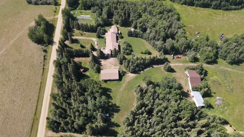 This home is so unique you will have to visit to see all that it has to offer...at approx 6300 sq ft including the legal suite it gives everything you are probably wanting and a host of areas you didn\'t even know you wanted. There are three living room/entertaining areas, 2 dining areas, a large kitchen with pantry and second cooking area, a pool room area with sauna, a sun room, a craft area and 3 bedroom - one of which is a very large master bedroom that has a nursery or office attached to it. Then we get to the legal suite with 2 bedrooms , 2 bathrooms, kitchen and two living room areas. The ideas for this space are only limited by what you think you may need it for or have a use of it for. The acreage comes with a detached garage, airplane hanger, two large cold storage buildings plus another building with power and gas available that can be finished and become a guest area or just a spot in the trees to relax and enjoy the outdoors. There is a brand new boiler just installed for the hot water heating system ( this is an excellent heating system for a house this large ) Two wells - under ground power to most of the buildings, another site that already has gas to it for potential build...this list is really endless!!! The acreage comes with 14.73 acres Excellent area for a large family and a private retreat - many large spruce trees and large open areas for recreation.