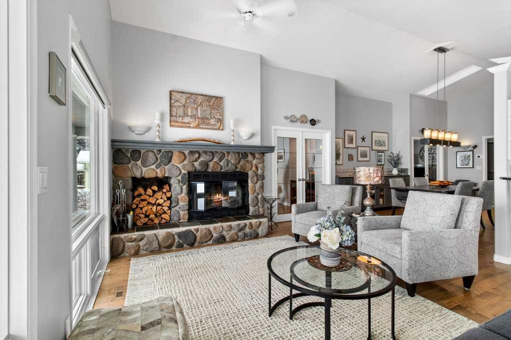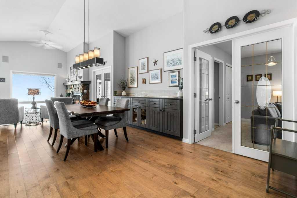 Enjoy a 180 degree lake view from this tastefully updated home in the highly desirable Summer Village of Jarvis Bay. This isn’t just a home—it’s a lifestyle upgrade. Located just steps from Sylvan Lake’s beautiful sandy shoreline and across from a small park, this stunning 3-bedroom bungalow offers breathtaking, unobstructed lake views and incredible sunsets, all while being only 200 feet from town limits. Set on a spacious 75 x 130 lot, the property provides the perfect balance of peaceful lake living and convenient access to town amenities. Start your mornings with coffee on the expansive wrap-around deck, constructed with treated spruce and water-sealed, where the lake becomes your daily backdrop. Inside, the open-concept living area features maple engineered wide plank hardwood flooring, a cozy wood-burning stone fireplace with natural gas log lighter, and large floor-to-ceiling windows that frame the water views and fill the home with natural light. The kitchen is both functional and stylish with granite countertops, bright windows, a JennAir range with interchangeable cooking cassettes including griddle, grill, and 2x2 elements, and a custom-built sideboard, creating a perfect space for cooking and entertaining. The primary bedroom is a private sanctuary featuring a beautifully updated 5-piece ensuite with underfloor heating and spa-like tub, along with a walk-in closet. Two additional spacious bedrooms share a convenient connected 3-piece bathroom, providing comfortable accommodation for family or guests. The main floor has also been refreshed with updated carpeting and fresh paint, enhancing the home’s bright and welcoming feel. This home offers a massive storage space beneath the home with a 5-foot-high crawl space that is easily accessible. Modern conveniences include central vacuum, remote-controlled blinds, and built-in audio wiring in the den, living room, ensuite, and bonus room. Mechanical upgrades provide added peace of mind with a generator and second dedicated electrical panel, a 2016 septic system, and a 2024 high-efficiency furnace with tankless hot water on demand. Outside, the beautifully landscaped yard features a firepit area perfect for evening gatherings. The property also includes a double attached garage with Aspart-X finished flooring and additional storage space, and a 20x24 flex room perched above the garage, creating a private oasis for guests or extended family. Recent exterior improvements include a new garage concrete pad and limestone driveway, completing this thoughtfully maintained property. With its unbeatable location just steps from the beach, thoughtful upgrades throughout, and exceptional lake views, this property offers a truly unique opportunity to enjoy the very best of Sylvan Lake living.