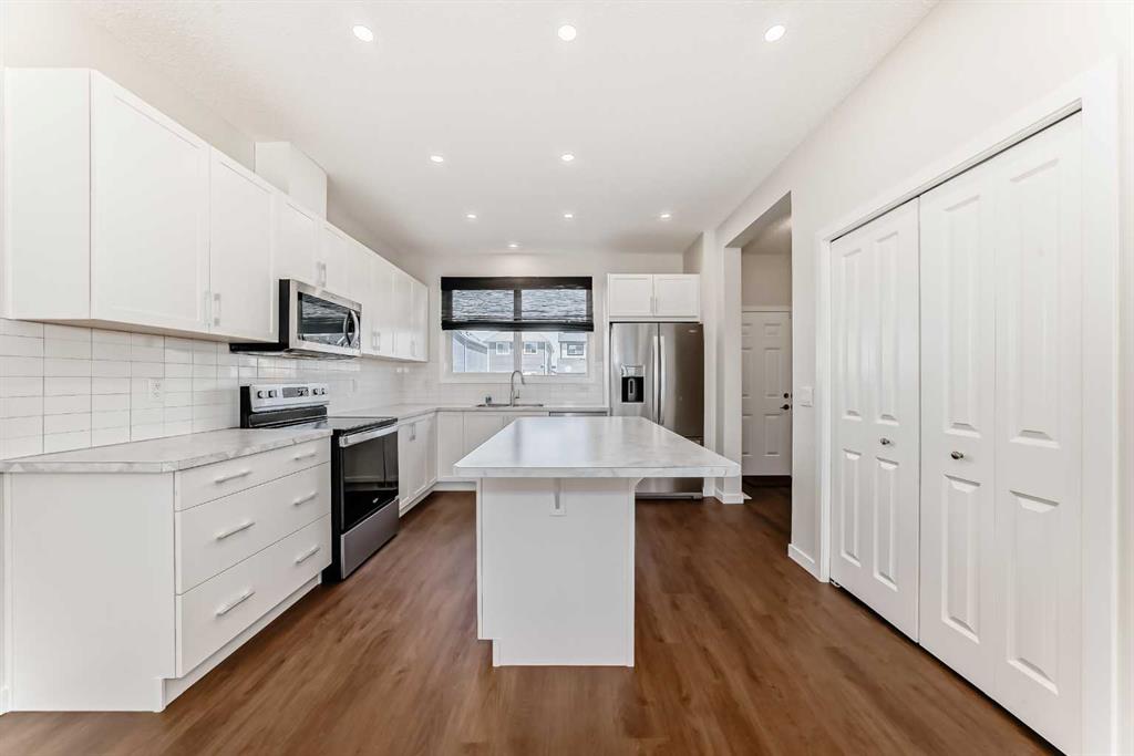 Welcome to This Immaculately Maintained Home Near Mahogany Lake! Step into this beautifully kept home, ideally located just minutes from Mahogany Lake. From the moment you enter, you’re greeted with an open-concept layout, soaring 9’ ceilings, and modern finishes throughout. The bright and stylish kitchen features white cabinetry, stainless steel appliances—including a brand-new dishwasher—and durable vinyl plank flooring. The efficient L-shaped layout offers ample counter space, plenty of storage, and a central island perfect for quick breakfasts or entertaining guests. The living area is flooded with natural light thanks to three sides of windows and a desirable south-facing orientation, making the space feel warm and inviting year-round. A functional front foyer with closet space, a convenient 2-piece bathroom, and a rear mudroom with an additional closet complete the main floor. Upstairs, the spacious primary bedroom offers large windows, a walk-in closet, and a 4-piece ensuite bathroom. Two additional generously sized bedrooms with closets, a centrally located 4-piece bathroom, and a laundry area with built-in storage provide practical and comfortable family living. Energy efficiency is a highlight, with triple-pane windows, a smooth six-panel fiberglass front door with metal-clad wood, a fuel-efficient furnace, and a tankless water heater for long-term savings and comfort. The unfinished basement includes rough-ins for a future bathroom, allowing for easy customization to suit your needs. Enjoy year-round access to Mahogany’s private beach (just a 3-minute drive away), nearby playgrounds, schools, shopping, restaurants, South Health Campus, and all the amenities this sought-after lake community offers. This exceptional home won’t last long—book your private showing today!