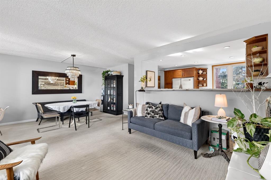 Welcome to Rideau Towers! Introducing this one-bedroom, one-bathroom corner unit perched on the 4th floor, with natural privacy guarded by trees. Thoughtful and unique open layout between the kitchen and living room featuring stainless steel appliances, ample cabinet space, tile flooring and easy flow for everyday living and entertaining. Generously sized bedroom and a well-appointed bathroom complete the comfortable interior. The unique corner unit allows SW light exposure to flow through the kitchen window giving it a brighter feel than most north facing units. An oversized balcony is yours to enjoy as is custom when you reside at Rideau Towers. Includes an outside parking stall and a storage locker. Situated on the Elbow River walking and biking pathway, just a 10-minute stroll down the hill to trendy Mission’s shops and restaurants; 15 minutes to the Stampede Grounds and the new Calgary Event Center. Easy access to Macleod Trail and Elbow Drive. Summer access to the building pool adds a perfect recreational bonus. Have you been dreaming of living on the hill looking over downtown Calgary? Have you been waiting to call this iconic building home? Call your favourite Realtor today to schedule your showing!