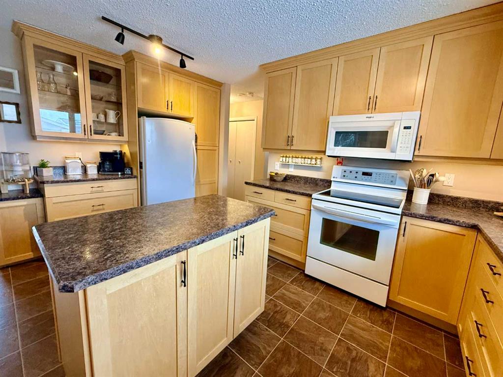 Look no further! This 3 bedroom 3 bath home is perfect for your family. It is located in a quiet neighbourhood and offers the option to use one room as a 4th bedroom. This beautiful kitchen is spacious, boasting custom cabinetry and lots of counter space. It adjoins the dining area and a cozy living room, which features an electric fireplace, hardwood floors and a big bay window. The hardwood floors complete the two upstairs bedrooms and the office. Enjoy the privacy of your own two-piece bath in the Master bedroom. The office features custom-built cabinetry thoughtfully designed to meet your organizational and/or business needs. The second bedroom is a good size and the main bathroom will stun you with its beauty and design featuring a large jetted tub, custom cabinetry and bay window that provides great natural light. The renovated basement is perfect for family gatherings, featuring an open family room was stand alone gas fireplace and an adjoining games/hobby room with a wall of built in cabinets. This room could also be used as a bedroom if needed. Attractive sliding barn doors close off the laundry room, and further down the hall you\'ll find a 3 pc bath and another bedroom. There is also extra storage found in the utility room and under the stairs. Venture outside and you\'ll enjoy your days in the private backyard, whether gardening, working in the raised flower beds or relaxing with friends around the table or fire on the concrete pad. This mature yard presents trees, shrubs, raspberries and two kinds of apple trees. The semi-attached double car garage is ideal for those cold winters and the shed is perfect for lawn or garden storage. Located in a very quiet neighborhood with little through traffic, it\'s great for the kids playing outside. The driveway offers ample parking, with extra space available beside the garage if needed. This house has been well maintained and also features custom blinds, some new light fixtures and some fresh paint. Make this house your home today!