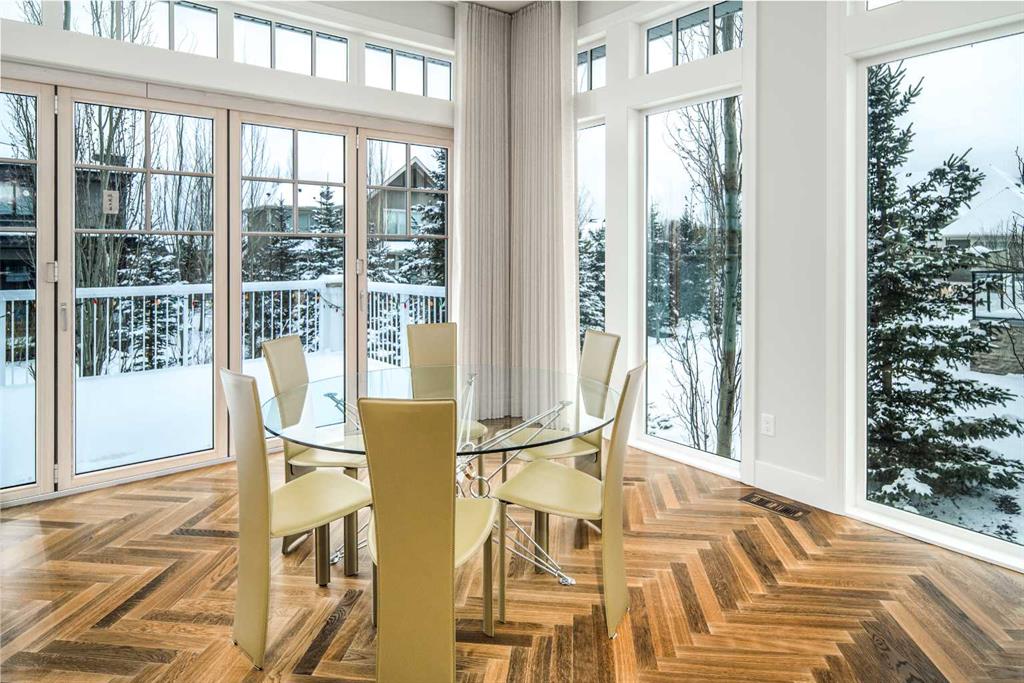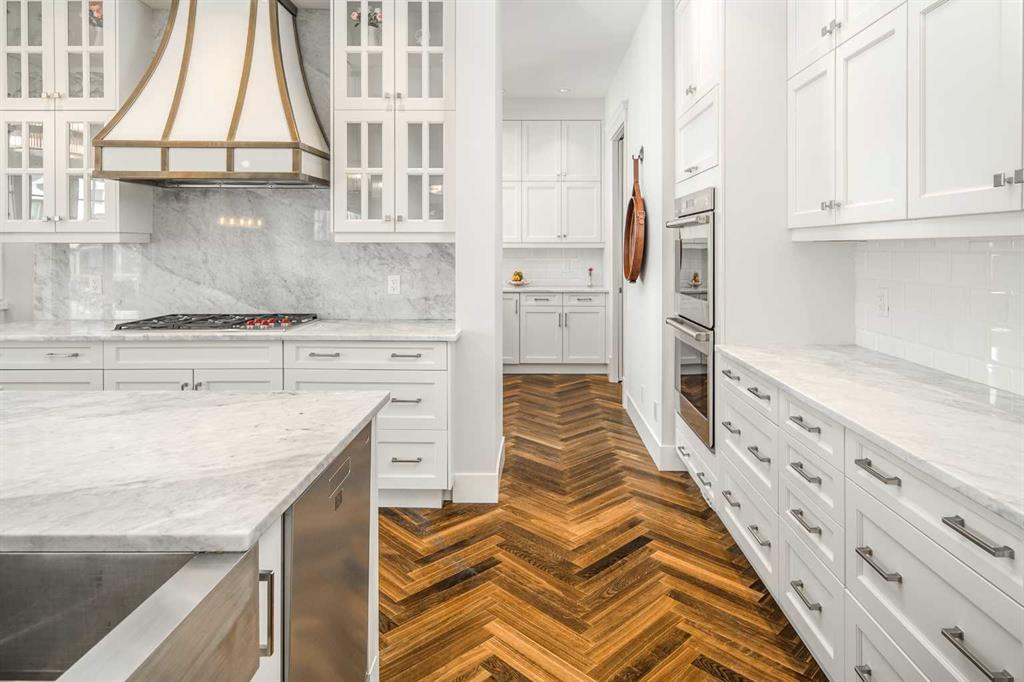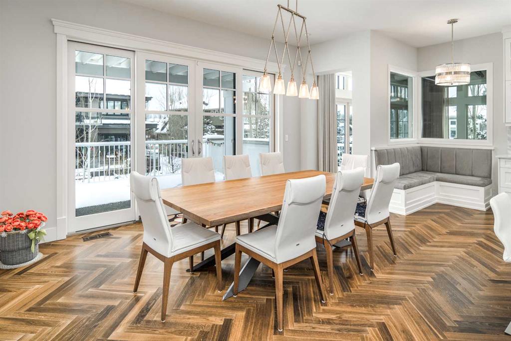 Welcome to this exquisite custom estate home by Wolf Custom Homes, nestled in the prestigious community of Watermark. Boasting over 5,400 sq. ft. of unparalleled craftsmanship and elegance, this former SHOWHOME offers tons of upgrades exemplifies luxury living. The house is in immaculate condition, having been used only occasionally by the owners. From the moment you step inside, you are welcomed by stunning luxury hardwood flooring that flows throughout the main level. The heart of the home is the gourmet chef’s kitchen, featuring beautifully crafted cabinetry, an oversized island with marble countertops, and top-of-the-line appliances, including a Sub-Zero fridge, Wolf gas stove and built-in oven, and an Asko dishwasher. Adjacent to the kitchen, the bright and inviting dining area and living room are adorned with expansive windows, allowing natural light to fill the space. A striking fireplace adds warmth and sophistication to this open-concept layout. For those who love to entertain, a formal dining room and a stunning 4-season sunroom extend onto an expansive, covered balcony—perfect for year-round enjoyment. A spacious main-floor office, complete with custom-built desk and shelving, offers the ideal work-from-home setup. A thoughtfully designed mudroom with a built-in bench and ample storage ensures effortless organization. Upstairs, retreat to the lavish primary suite, where a spectacular walk-in closet with custom spa-like 5-piece ensuite. Indulge in the free-standing soaker tub, oversized glass-enclosed shower, and dual vanities. Two additional generously sized bedrooms, each with its own walk-in closet and private 4-piece ensuite, provide ultimate comfort. A large bonus room and a convenient upper-floor laundry room complete this level. The fully developed walk-out basement, enhanced with in-floor heating, extends the home’s luxurious appeal. It boasts a spacious entertainment area with a fully equipped wet bar, a modern fitness room, an additional bedroom, and a beautifully appointed four-piece bathroom. Step outside to your private backyard oasis, where breathtaking views, lush landscaping, and elegant decorative LED system (10K value) and garden lighting (6K) create the perfect setting for entertaining or quiet evenings under the stars. Located in the exclusive estate community of Watermark, this home provides the tranquility of country living with the convenience of city amenities just minutes away. Enjoy scenic pathways, parks, playgrounds, and the renowned Central Plaza with a pavilion, picnic areas, firepit, sports courts, and lush green spaces. Experience the pinnacle of luxury—book your private showing today!
