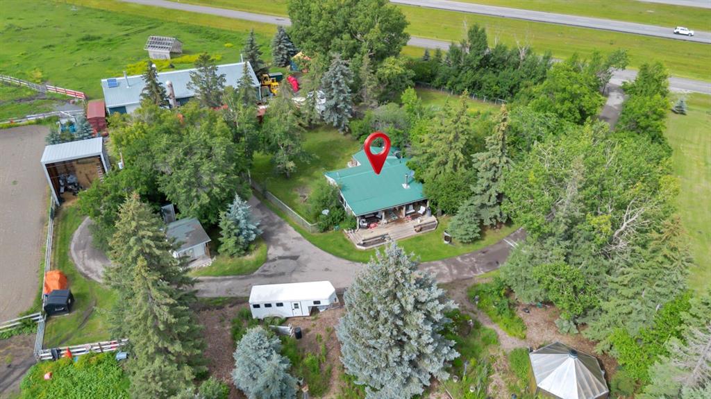 to its appeal, the property includes a cozy 891 sq ft home/office, perfect as a residence, rental, or business HQ. The layout is functional and inviting, offering flexibility for live-work arrangements or administrative space.With plenty of open land, there\'s also room for horses, storage, or future development—bringing even more versatility to this already outstanding property. Highway 2 frontage, with quick access to Okotoks and Calgary, this unique acreage combines industrial potential with rural tranquility.