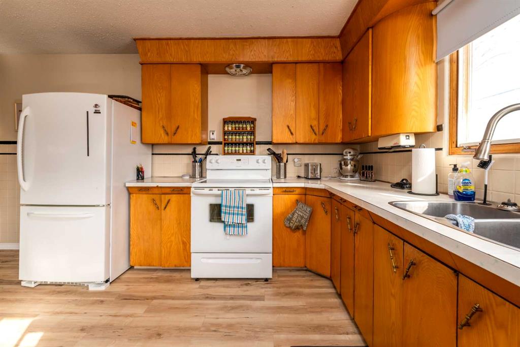 Welcome Home! Here you find a solid, nicely maintained three bedroom bungalow with a NEW FURNANCE (with A/C coil) and a NEW HOT WATER TANK, laminate flooring and a main bathroom refresh with a tasteful, tile tub surround are some updates to mention. A functional floorplan with a spacious living room offering possibilities for many furniture arrangements. The eat-in kitchen gets good natural light from the south facing window and features tile wainscoting, plenty of cabinetry and counter space and included appliances. The rear foyer is a supersized flexible space leaving plenty of room for coat and boot storage but also with the BONUS of the option of main floor laundry. This entrance also offers direct access to the basement which could provide for separated, private access for extended family or a roommate. Downstairs is a cozy family room, bedroom, the current laundry location and utility room, unfinished storage (or future bedroom) and a two piece bath. Outside you find charming street presence, a simple landscaped yard, and detached 14x22 garage with rear alley access. This is a quiet, central location providing easy access to services, shopping, restaurants and amenities. Make your move!